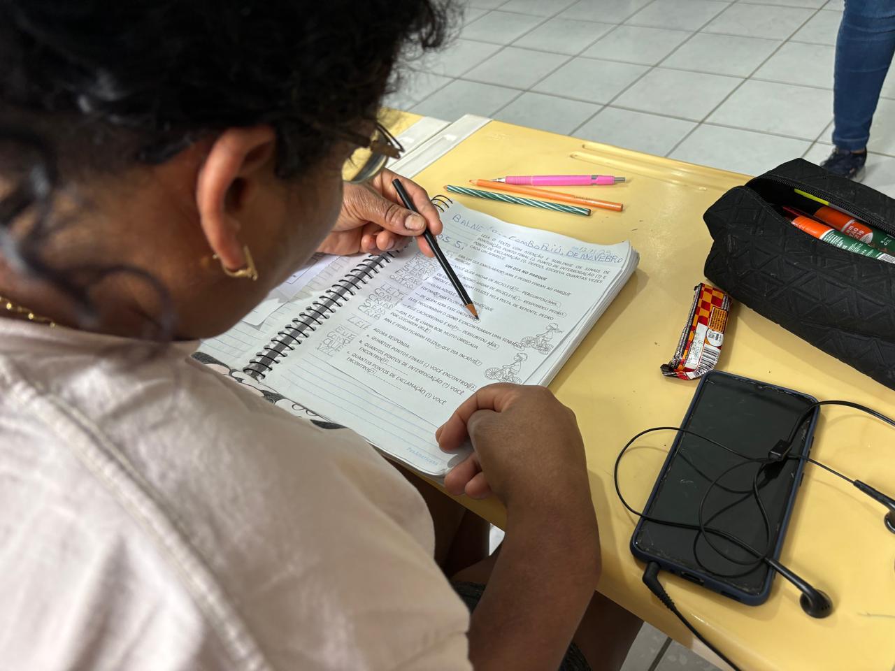 Rita Cristina Canuto, de 42 anos, também é aluna da turma multisseriada do CEJA e as aulas a ajudam a escrever com a mão esquerda, já que uma deficiência a impede de escrever com a outra mão. “Tenho um problema físico no braço, então eu tive que reaprender a escrever com a mão esquerda. Tem tantas pessoas que falam que a gente, depois de uma idade, não pode seguir o sonho da gente, estudar, fazer as coisas, mas eu acho que não tem nada a ver. O aprendizado está aí para somar nas nossas vidas”, relata.