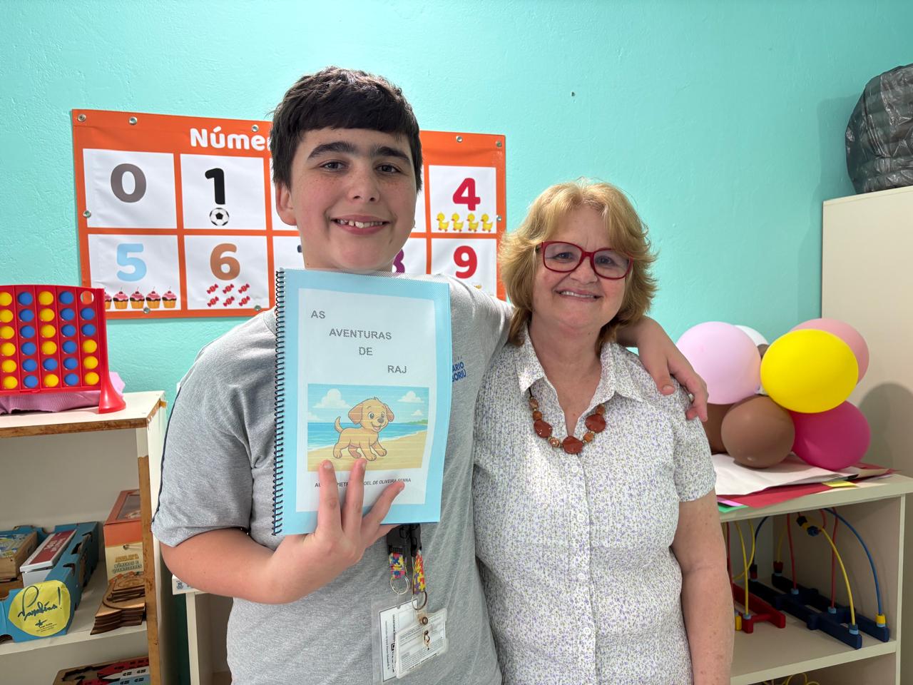 Mais de 500 alunos da Rede Municipal de Ensino recebem atendimento nesta modalidade. Um deles é Pietro Emanuel de Oliveira Senna, aluno do Centro Educacional Municipal (CEM) Giovania de Almeida, localizado no Bairro Estaleirinho. Pietro é diagnosticado com TEA e, ao lado da professora de AEE, conseguiu explorar uma série de atividades de desenvolvimento cognitivo que culminaram na elaboração de dois livros de histórias infantis.