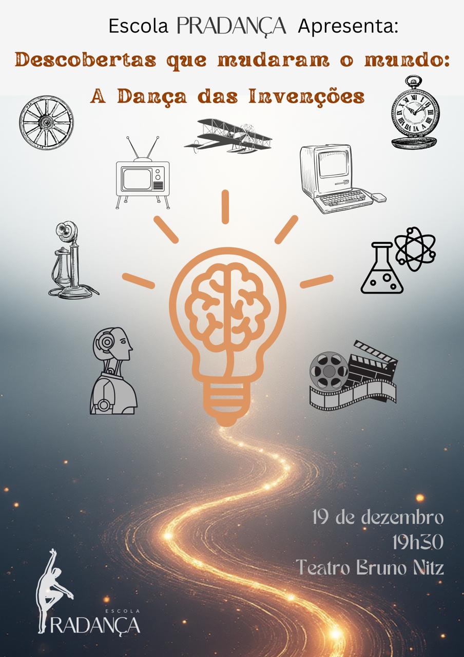 O evento marca o encerramento de 2025 da Escola PraDança, que levará ao palco coreografias desenvolvidas no último semestre. Para criar o espetáculo, professores e coreógrafos da escola inspiraram-se em descobertas e invenções da humanidade, como a roda, as ferramentas, a pólvora, a escrita, o avião, o telefone, a televisão, os computadores e a inteligência artificial.