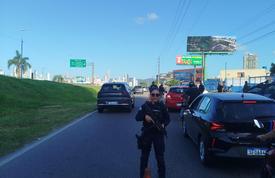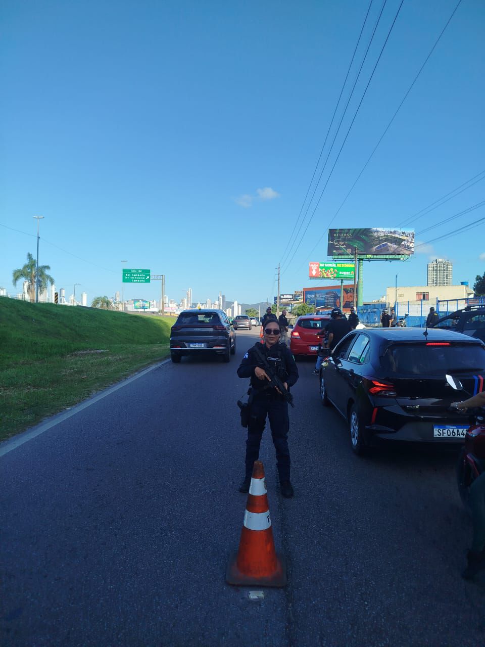 A Prefeitura de Balneário Camboriú realizou, nesta quinta-feira (18), a primeira ação integrada envolvendo três forças de segurança na Marginal Oeste. A operação foi coordenada pela Secretaria de Segurança e Ordem Pública, por meio da Guarda Municipal, em conjunto com a Autarquia Municipal de Trânsito (BC Trânsito) e a Polícia Rodoviária Federal (PRF), com a instalação de uma barreira de fiscalização no local.
