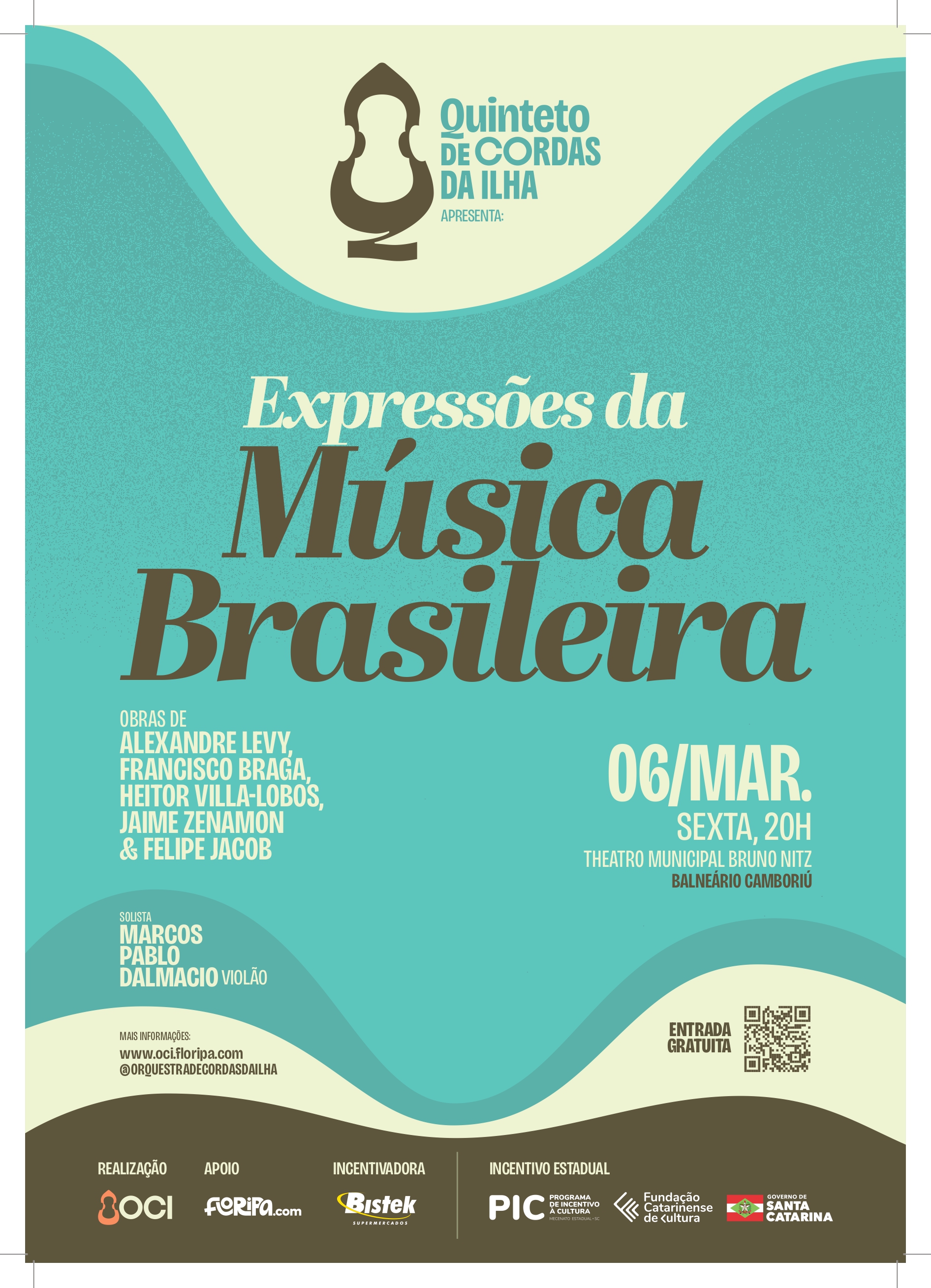 Na sexta-feira (6), às 20h, o público poderá assistir a um recital gratuito. A apresentação integra o projeto “Expressões da Música Brasileira” e traz o Quinteto de Cordas da Ilha, formado por músicos da Orquestra de Cordas da Ilha, com participação do violonista Marcos Pablo Dalmacio. Os ingressos gratuitos podem ser retirados na plataforma Sympla.