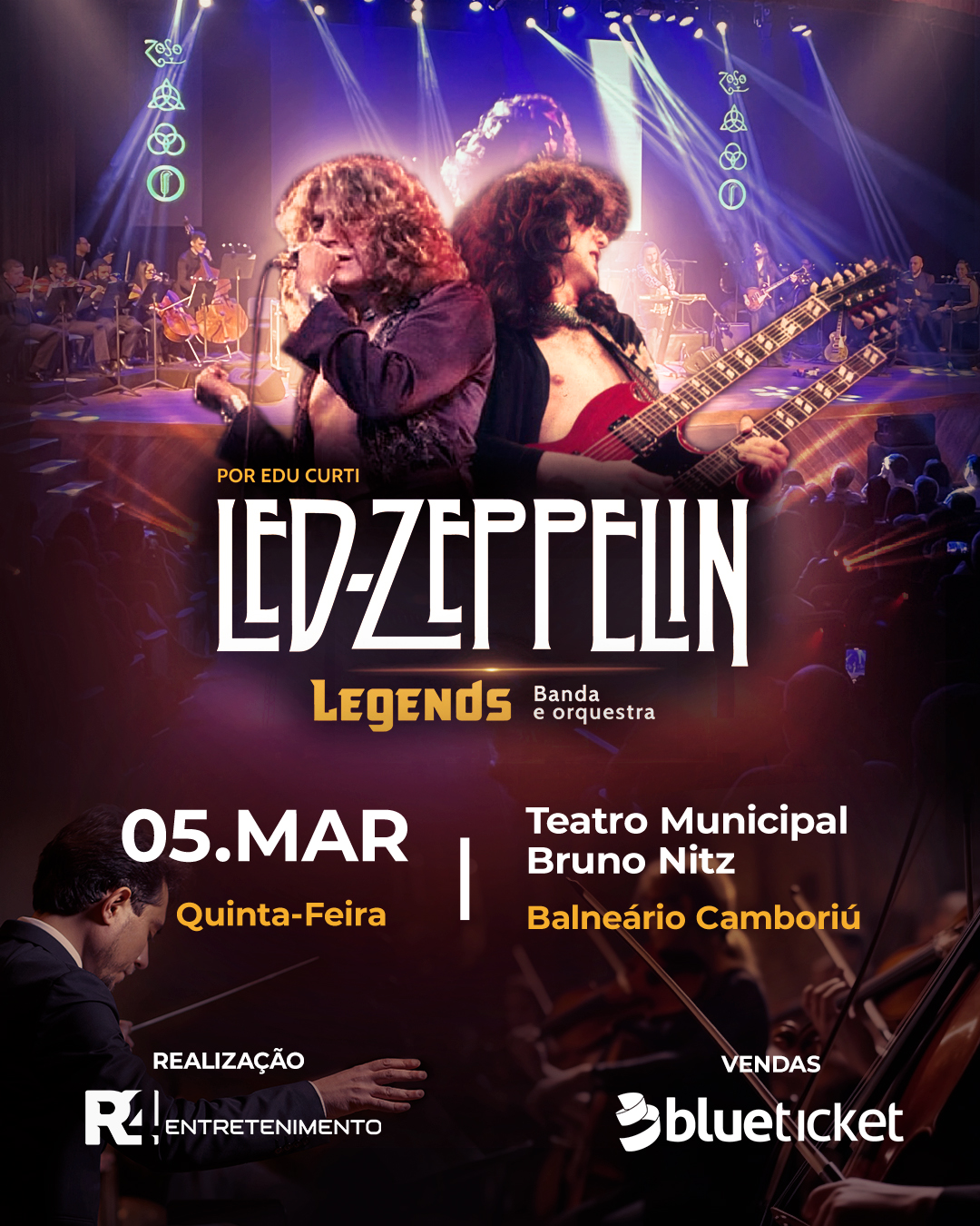 A agenda de março será aberta nesta quinta-feira (5), às 20h, com o espetáculo "Led Zeppelin Legends In Concert", que reverencia a obra de um dos grupos mais influentes da história do rock. No palco, estarão banda e orquestra, que executarão clássicos do Led Zeppelin, como Stairway to Heaven, Kashmir, Whole Lotta Love, Black Dog e Immigrant Song. O show terá como vocalista Edu Curti, cantor conhecido por seu trabalho à frente de projetos autorais e em tributos. Os ingressos podem ser adquiridos na plataforma Blueticket ou no link https://www.blueticket.com.br/evento/40086.