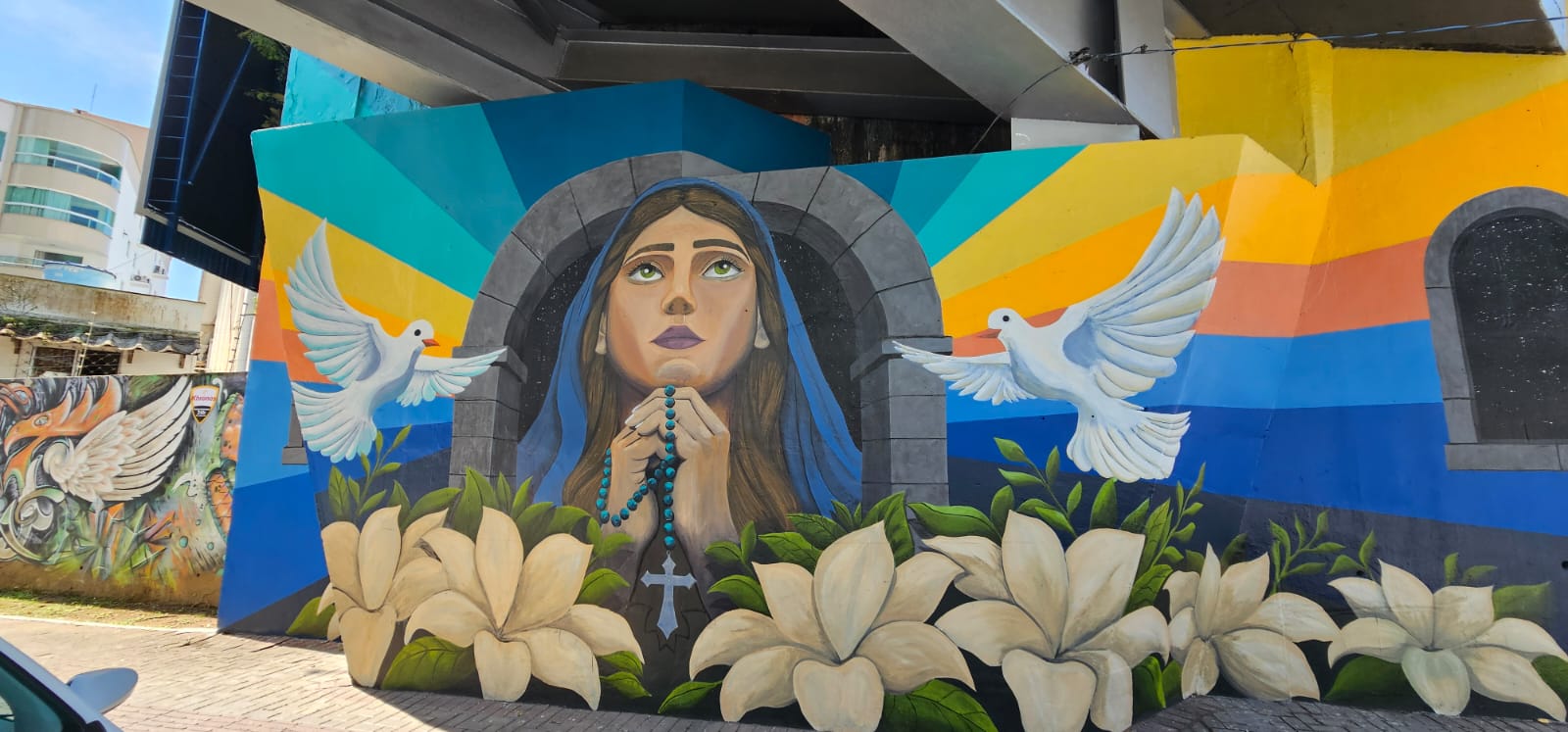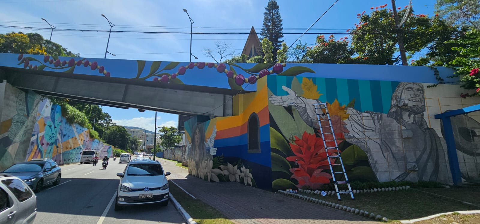 Viaduto Zeferino Pretto ganha mural inspirado na fé cristã
