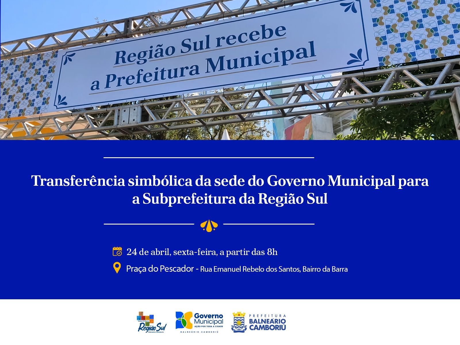 A subprefeita da Região Sul, Grasiela Martins, afirma que o evento não se limita a uma simples transferência, mas simboliza a valorização da região, berço de Balneário Camboriú. “Valorizar não apenas o Bairro da Barra, mas toda a Região Sul, é demonstrar respeito por essa terra tão especial, de raízes açorianas, baseada na pesca, no artesanato e na rica culinária, e merecedora desse reconhecimento. Estaremos aqui, próximos da comunidade, com dezenas de atividades ao longo do dia. Traga toda a família e venha aproveitar mais um evento especial que preparamos com todo carinho”, ressaltou.