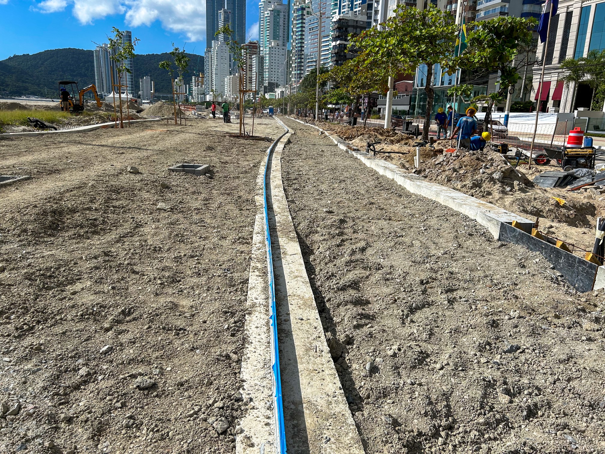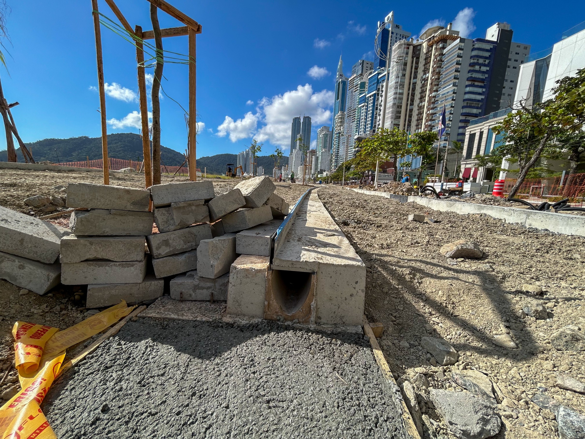 Calhas ocultas integram o sistema de drenagem da nova orla de Balneário Camboriú