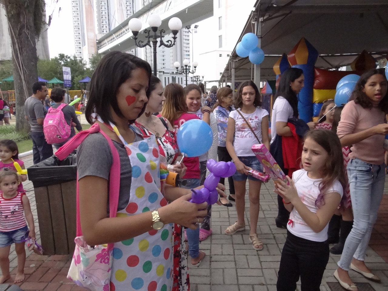 Pula-pula, piscina de bolinhas, escorregador inflável, pintura de rosto, atividades de colorir foram algumas das atividades oferecidas gratuitamente para as crianças. Mas foi a gincana no palco principal que atraiu o maior número de público. Pais e filhos participavam das brincadeiras que estimulavam a amizade e o respeito. Os adultos eram desafiados a subir no palco e cantar uma música da infância, um versinho ou alguma mensagem positiva para as crianças. “Meu conselho é para que elas sejam o máximo que puderem crianças, brinquem bastante, sonhem, se divirtam e não tenham pressa para se tornarem adultas”, disse uma das mães.