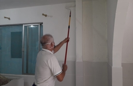 Agora a equipe está no NEI Pioneiros, fazendo roça e capinação e no CEM Iate Clube instalando nova fiação para ar-condicionado. Nesta quarta-feira (31) a equipe irá para o NEI Pão e Mel consertar vazamento, e retornam para o NEI São Judas fazer roça e limpeza de entulhos e seguem com os trabalhos no CEM Iate Clube, que devem levar cerca de uma semana, já que a fiação é para instalação de 12 aparelhos.
