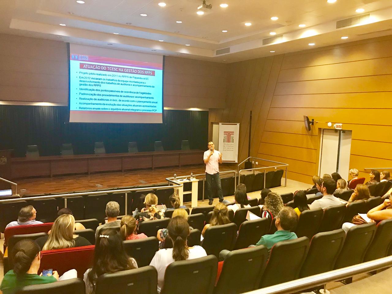 O BCPREVI participou na última quarta e quinta-feira (20 e 21), de capacitação promovida pelo Tribunal de Contas do Estado (TCE) e pela Associação dos Institutos Municipais de Previdências Social de Santa Catarina (ASSIMPASC). A atividade teve como tema a relação do Tribunal com os Regimes Próprios de Previdência Social, e contou com palestras sobre a implementação do E-social, que será obrigatório a partir do ano que vem, além da legislação e controle externo exercido pelo TCE em seu papel fiscalizador.