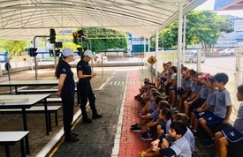 Nesta quarta-feira (10), o Espaço Vivencial de Trânsito (EVT), localizado no Departamento de Trânsito, recebeu os alunos do primeiro e segundo ano do Centro Educacional Municipal (CEM) Dona Lila, no período da tarde. As atividades de educação no trânsito são realizadas pelo setor de Educação para o Trânsito da Secretaria de Segurança de Balneário Camboriú.