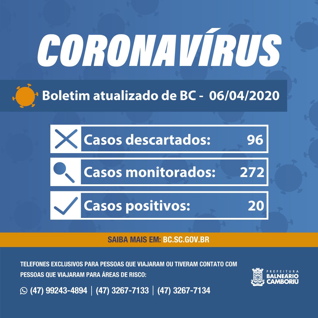 Boletim 06/04/2020 - Balneário Camboriú registra 20 casos de coronavírus