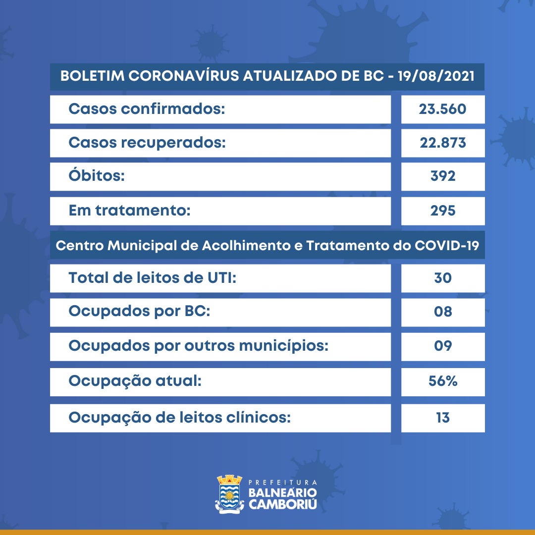 Boletim 19/08/2021 - Balneário Camboriú registrou 25 novos casos de Covid-19