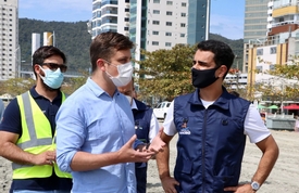 O prefeito de Balneário Camboriú, Fabrício Oliveira, apresentou na manhã desta quinta-feira (09), a obra de recuperação da Praia Central ao prefeito de Maceió (AL), João Henrique Caldas (JHC). O prefeito da capital alagoana veio ver de perto o andamento da obra e conhecer os detalhes técnicos para implementar em praias de Maceió, a recuperação de orla semelhante.
