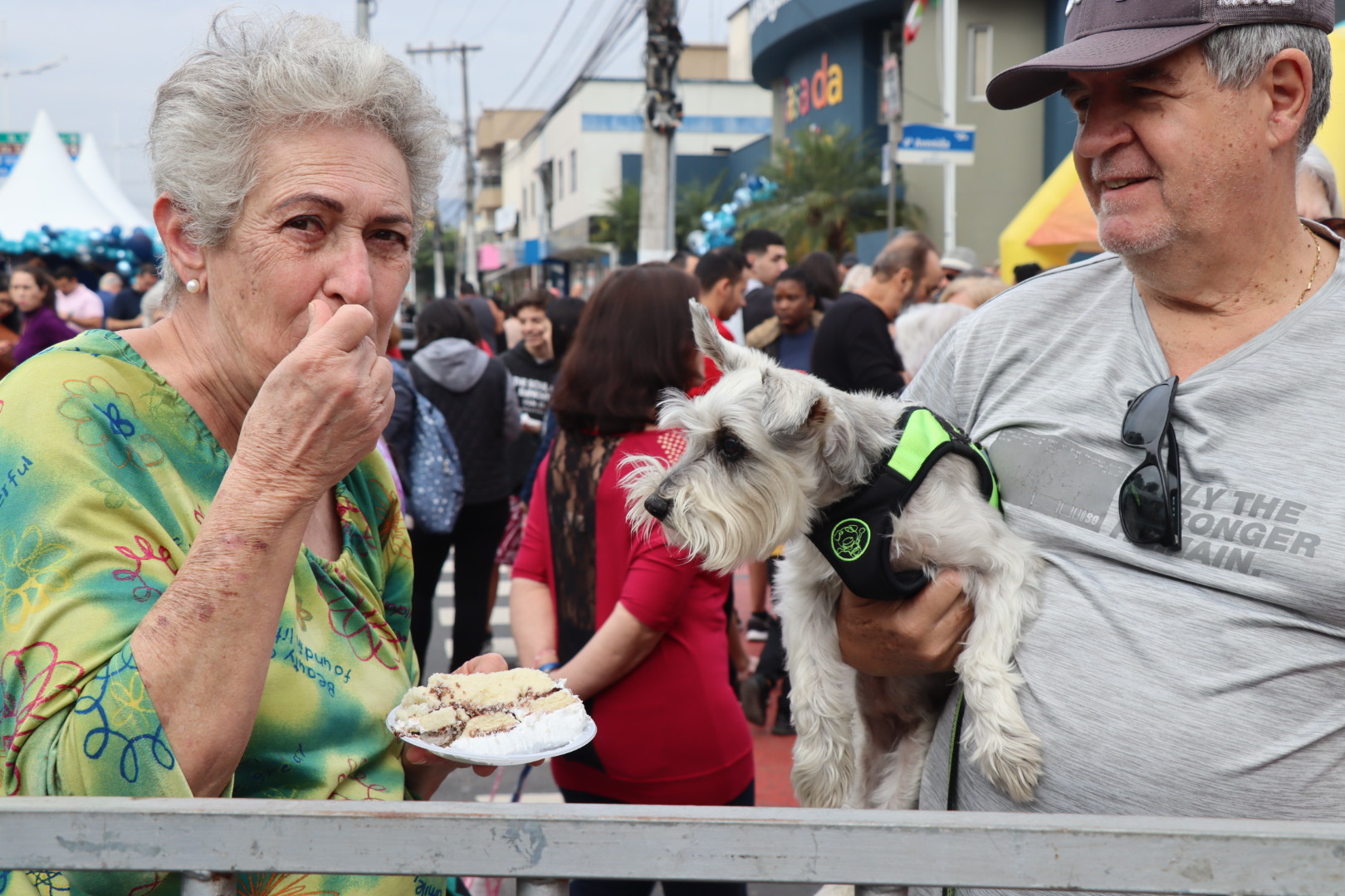 Para a comemoração dos 58 anos, os mais de 60 metros de bolo (58 metros no Centro e 10 metros no Bairro da Barra) foram recheados com ganache de chocolate e distribuídos em pratos e guardanapos para a população. Alzira Gava, moradora da cidade, veio com a irmã participar do corte do bolo. “Está tudo muito bom, vim aqui ansiosa para experimentar o bolo do aniversário da cidade pela primeira vez”, conta.