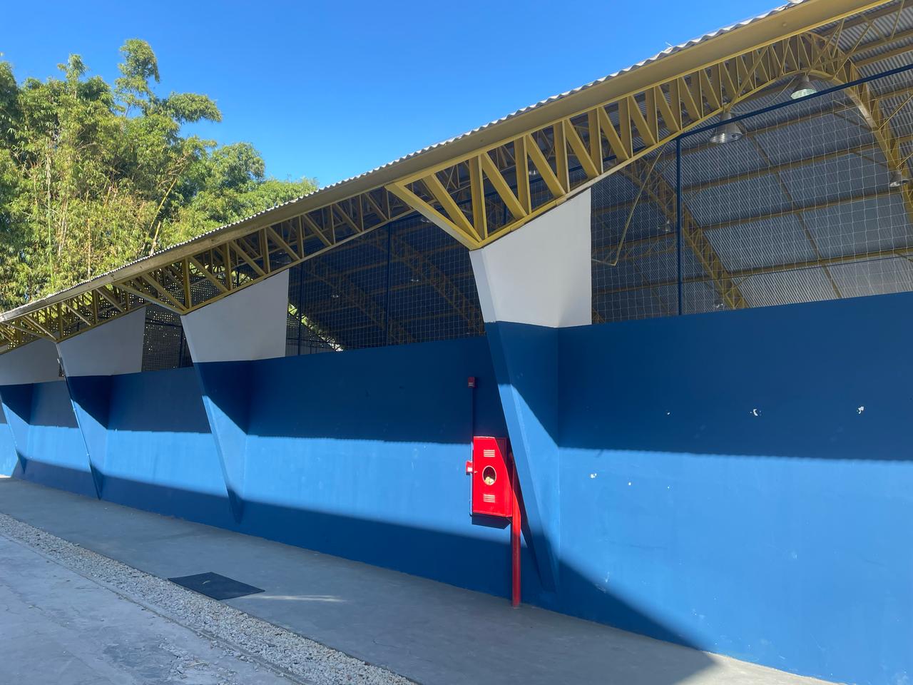 No ginásio, a estrutura metálica foi reformada e pintada, juntamente com os alambrados. Também foram substituídas as redes de proteção, o que deu uma nova cara ao local onde as atividades esportivas são realizadas.