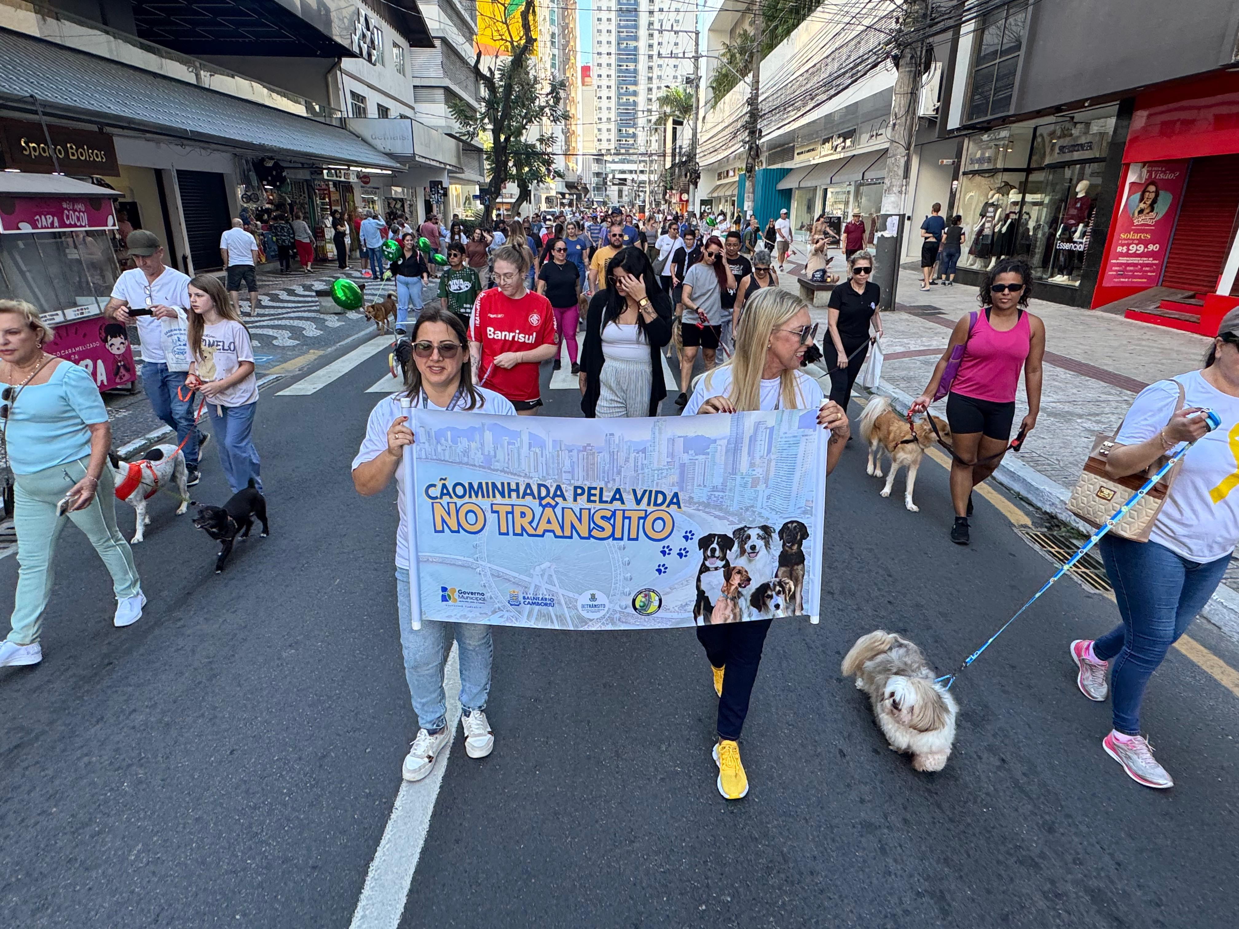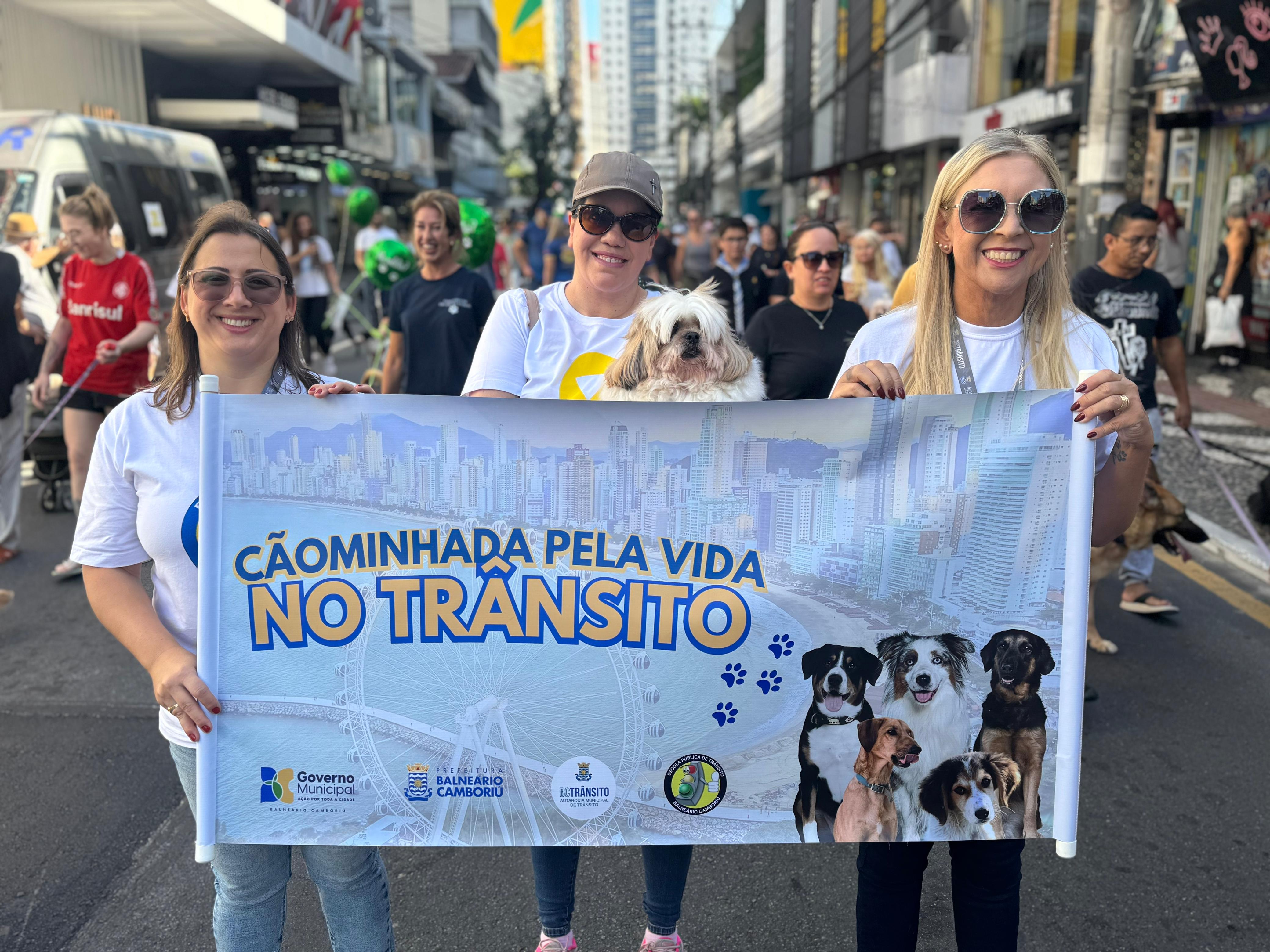 Balneário Camboriú recebeu neste domingo (4) a 7º Cãominhada Pela Vida no Trânsito, alcançando a incrível marca de aproximadamente 150 cães com seus tutores, com objetivo de conscientizar sobre o cuidado consciente no transporte de animais no trânsito, garantindo segurança e conforto. A ação foi o start do Movimento Mundial Maio Amarelo, campanha de conscientização e prevenção do trânsito.