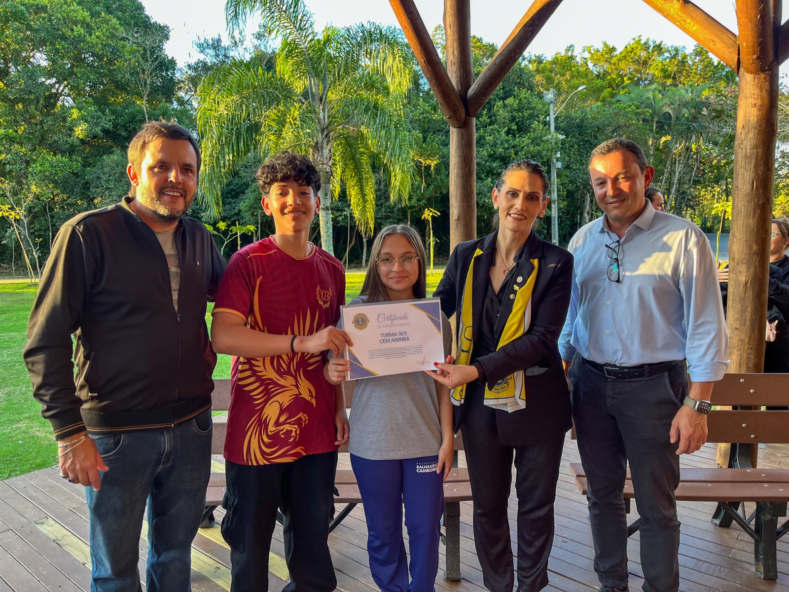 Lançada no mês do Meio Ambiente, a gincana de arrecadação de tampinhas foi realizada nos Centros Educacionais Municipais (CEMs) de Balneário Camboriú até quarta-feira (27), com premiação das escolas vencedoras realizada no final da tarde desta sexta-feira (29), no Parque Natural Municipal Raimundo Gonçalez Malta. Participaram da ação alunos do 1° ao 9° ano, de 11 escolas da cidade.