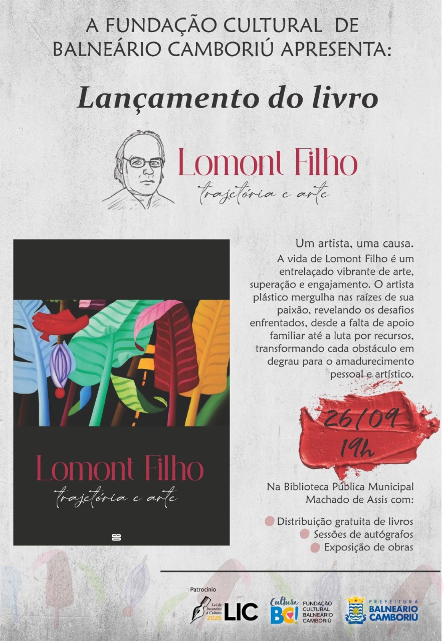 O artista plástico, escritor e músico Lomont Filho lança a autobiografia “Lomont Filho – Trajetória de Vida e Arte” nesta sexta-feira (26), às 19h, na Biblioteca Pública Municipal Machado de Assis, em Balneário Camboriú.