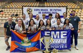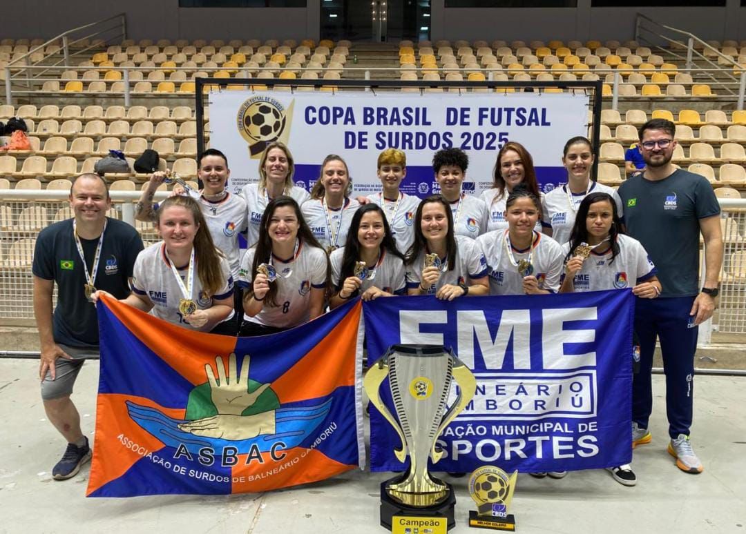 A equipe feminina da Fundação Municipal de Esportes (FME)/Associação de Surdos de Balneário Camboriú (ASBAC) se consagrou bicampeã da Copa do Brasil de Futsal de Surdos, competição realizada de sexta-feira (26) até este domingo (28), em Cuiabá, no Mato Grosso. Além do troféu de primeiro lugar, a goleira Iro Vanelli foi eleita a melhor goleira da competição, com apenas dois gols sofridos.