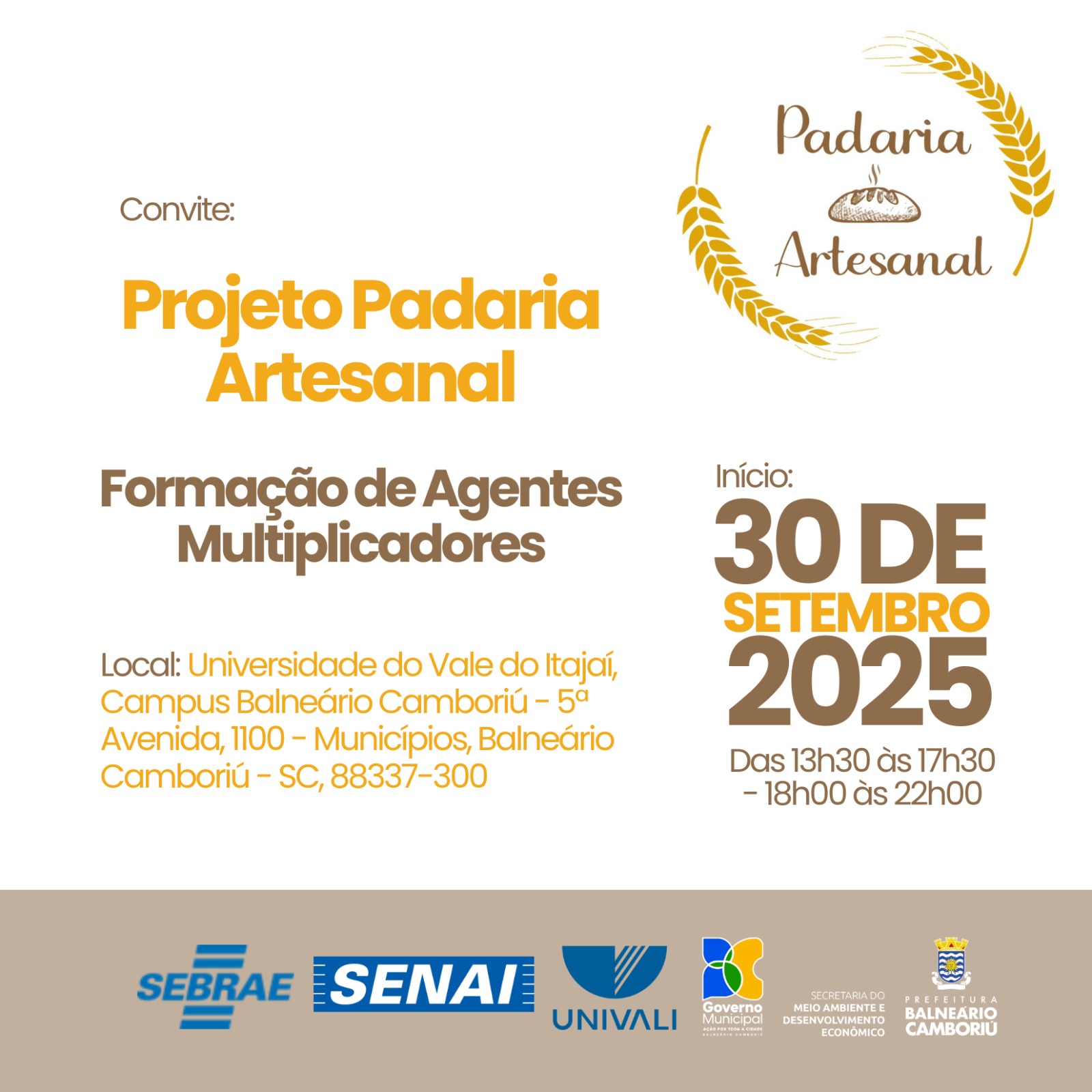 Os agentes formados estarão aptos a ministrar cursos para pessoas em situação de vulnerabilidade social, público prioritário da ação. O Projeto Padaria Artesanal faz parte do programa Cidade Empreendedora e é realizado pela Prefeitura, em parceria com o Serviço Brasileiro de Apoio às Micro e Pequenas Empresas (Sebrae), Serviço Nacional de Aprendizagem Industrial (Senai) e Univali. O objetivo é promover o empreendedorismo, a inclusão produtiva, a formalização e a geração de emprego e renda, principalmente para a população em situação de vulnerabilidade social.