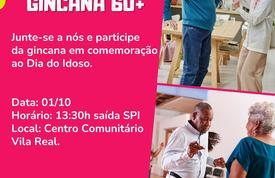 A Secretaria da Pessoa Idosa de Balneário Camboriú promove, nesta quarta-feira (1º) uma gincana alusiva ao Dia Internacional do Idoso, comemorado na data. O evento acontecerá no Centro Comunitário da Vila Real - Rua Dom Daniel, s/n, Bairro Vila Real. Qualquer idoso poderá participar da atividade e, quem tiver interesse, deve ir até a sede da SPI (Rua 1822, nº 614, Centro), de onde a saída está marcada para às 13h30. O evento está marcado para começar às 14h.