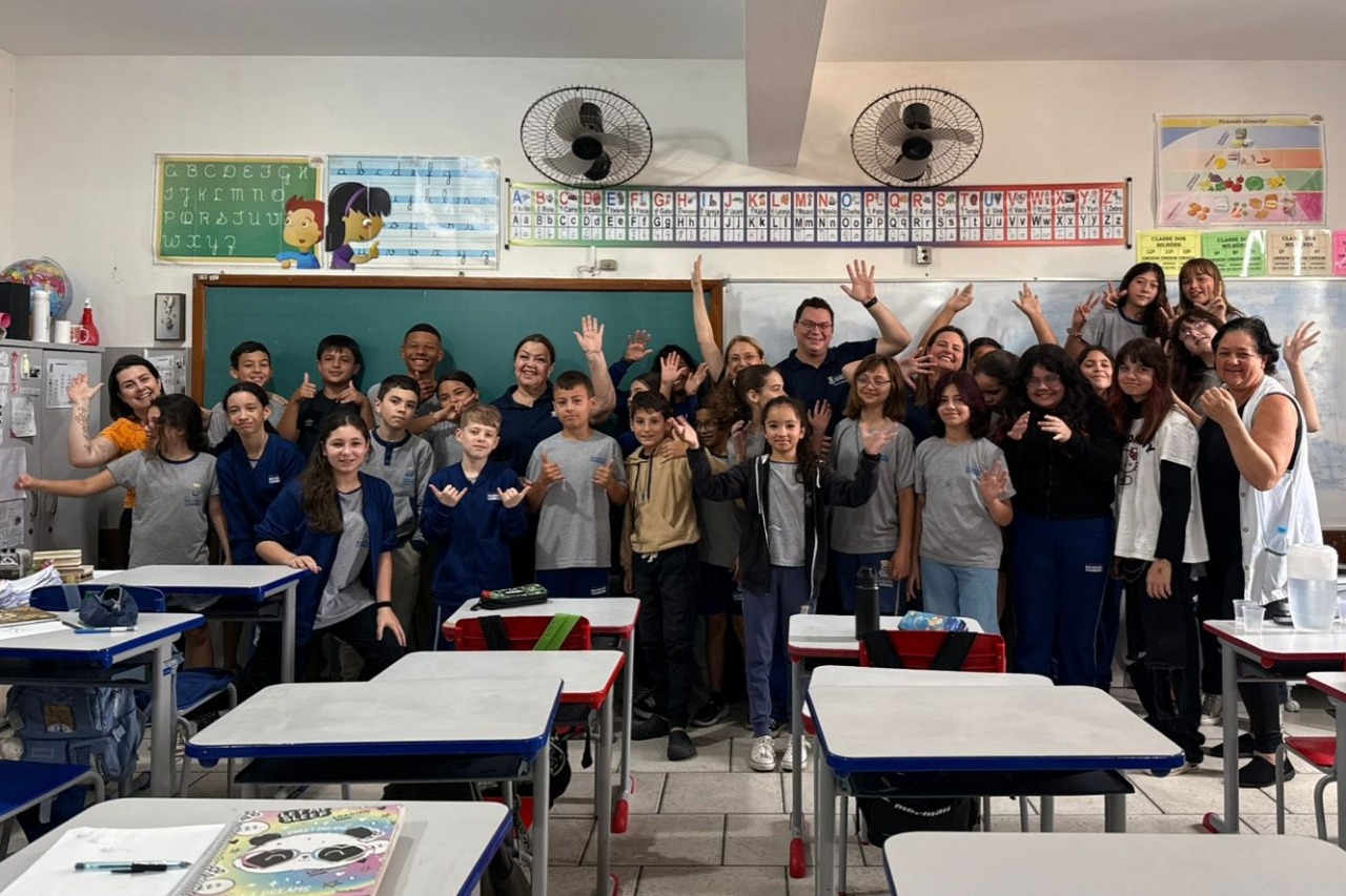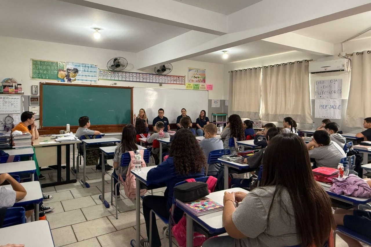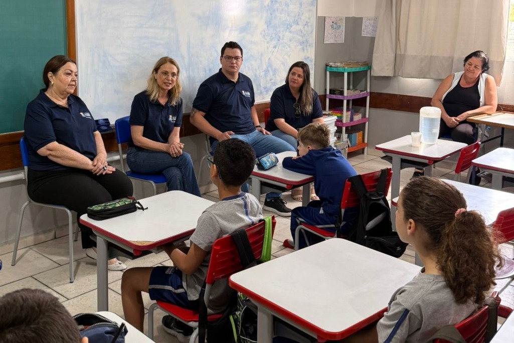 A Prefeitura Municipal de Balneário Camboriú, através da Secretaria da Fazenda, realizou uma roda de conversa com 60 estudantes do quinto ano do Centro Educacional Municipal Professor Armando César Ghislandi, na última quinta-feira (16). O encontro reuniu alunos dos turnos matutino e vespertino participantes do Programa de Educação Fiscal e Financeira, iniciativa piloto desenvolvida na unidade escolar.