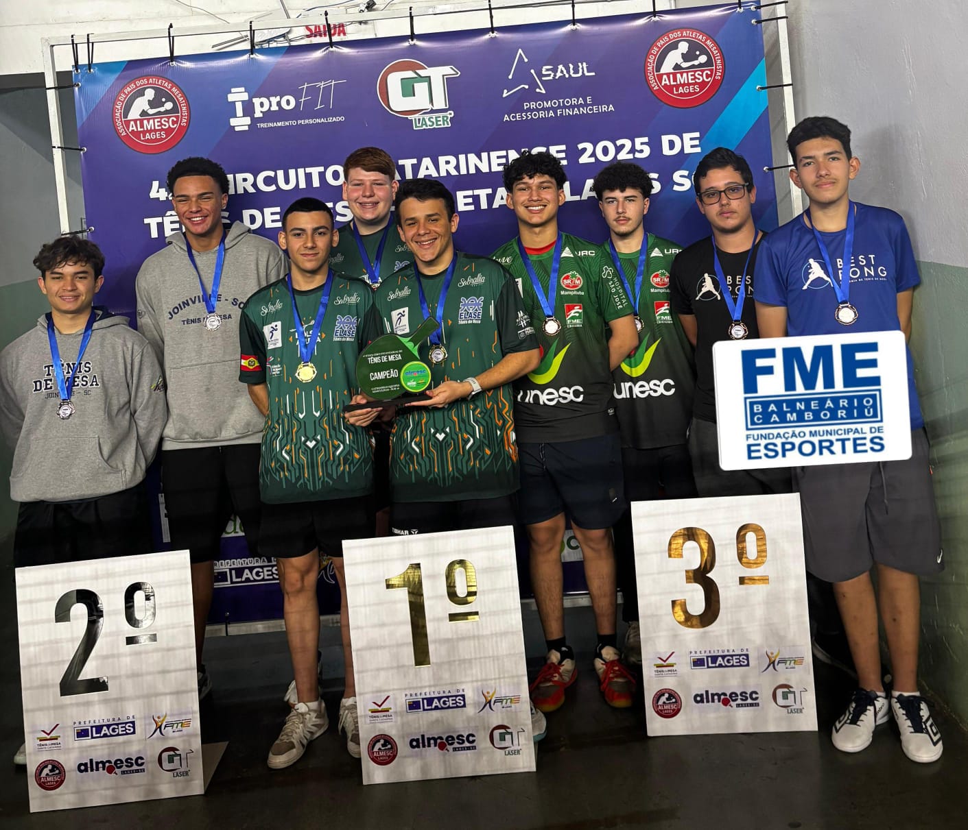 A delegação da Fundação Municipal de Esportes (FME) de Balneário Camboriú obteve grandes resultados na 6ª Etapa Circuito Catarinense de Tênis de Mesa, realizado de 17 a 19 de outubro, na cidade de Lages. Foram conquistados dois pódios na competição, de 1° e 3° lugar, colocando o município entre os melhores do estado.