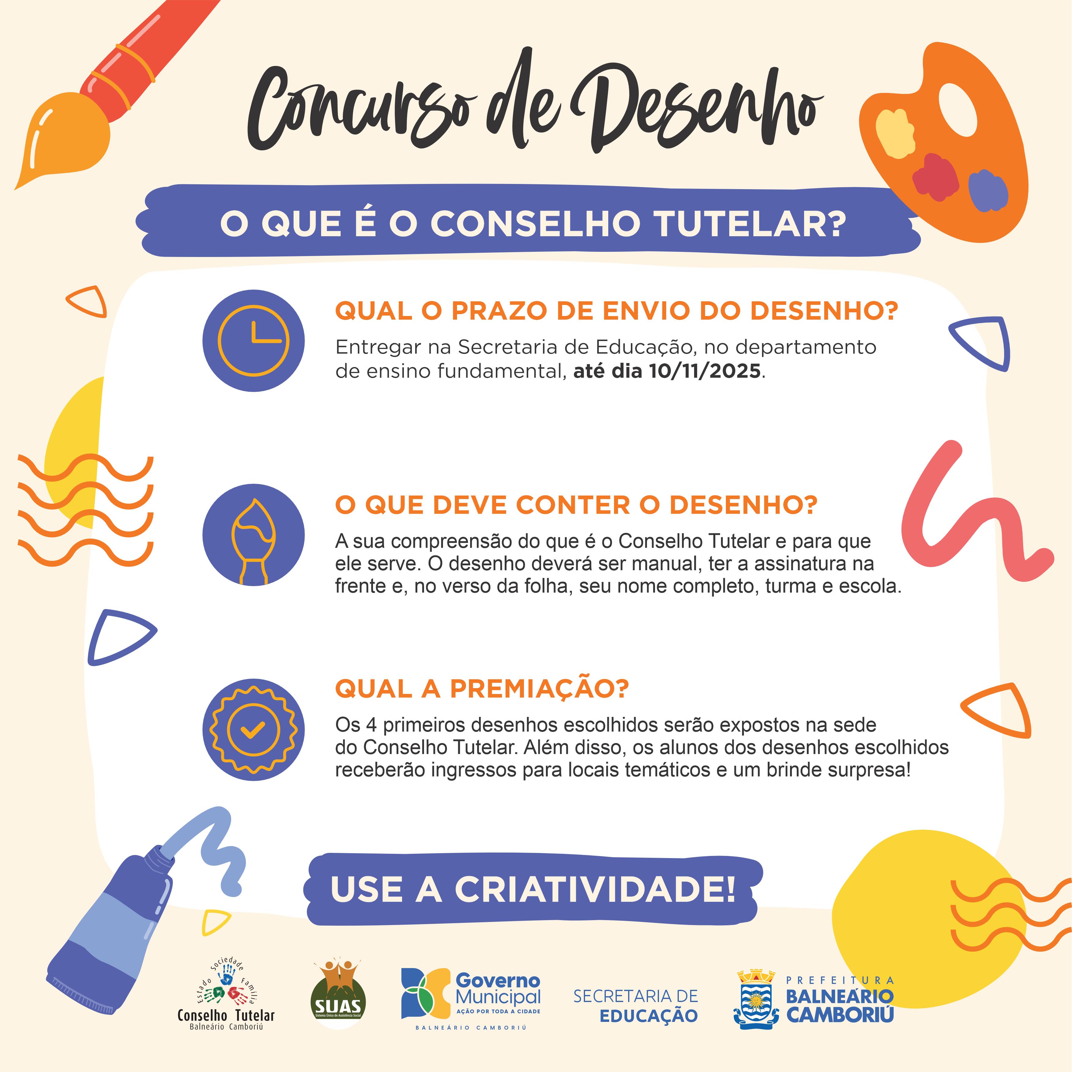 O Conselho Tutelar de Balneário Camboriú, em parceria com a Secretaria Municipal de Educação (Seduc), abriu concurso de desenho voltado a estudantes da rede municipal. A iniciativa tem como objetivo fortalecer o conhecimento sobre o papel e as atribuições do Conselho Tutelar na proteção integral de crianças e adolescentes.