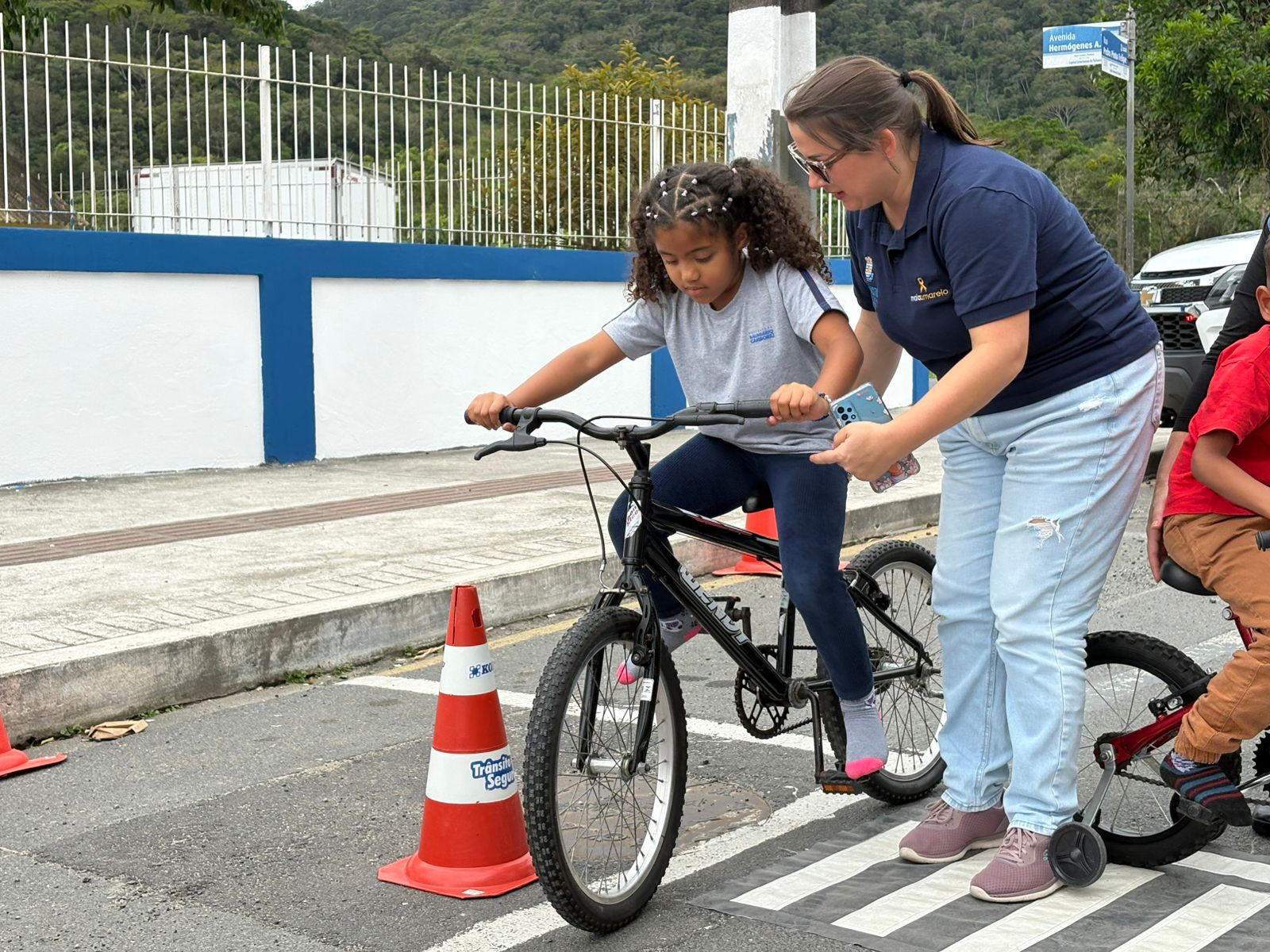 “Levamos instruções sobre condutas de prevenção no trânsito: o deslocar para a escola, ir e vir de forma segura, principalmente aqueles que vêm de bicicleta, patinetes e demais equipamentos de mobilidade. Orientamos quanto ao uso dos equipamentos obrigatórios, a forma correta de pedalar. Acreditamos que desde pequenos essas instruções são importantes porque já fazem parte do cotidiano deles ”, comentou a agente de trânsito Mirian Adriana de Oliveira.