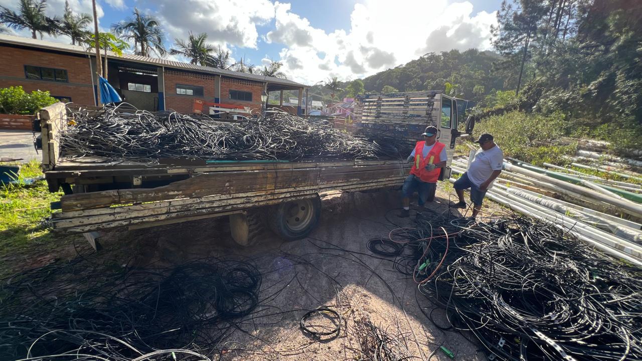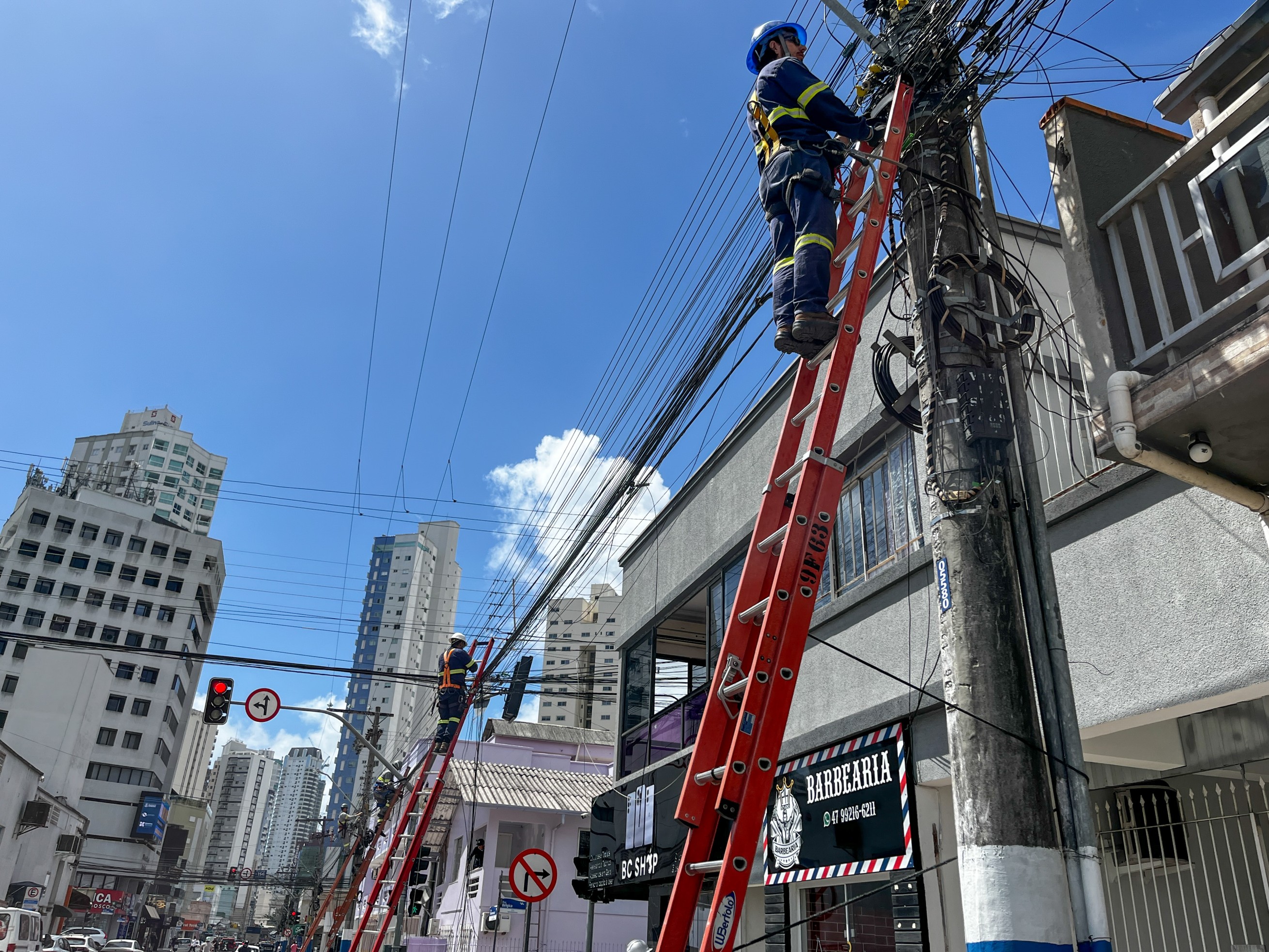 A Contribuição para o Custeio da Iluminação Pública (Cosip) de Balneário Camboriú realizou, nesta quarta-feira (22), uma força-tarefa para retirar cabos soltos e obsoletos nas ruas Chile e Dinamarca, no Bairro das Nações. A ação resultou na retirada de uma tonelada de fios dos postes de iluminação pública.