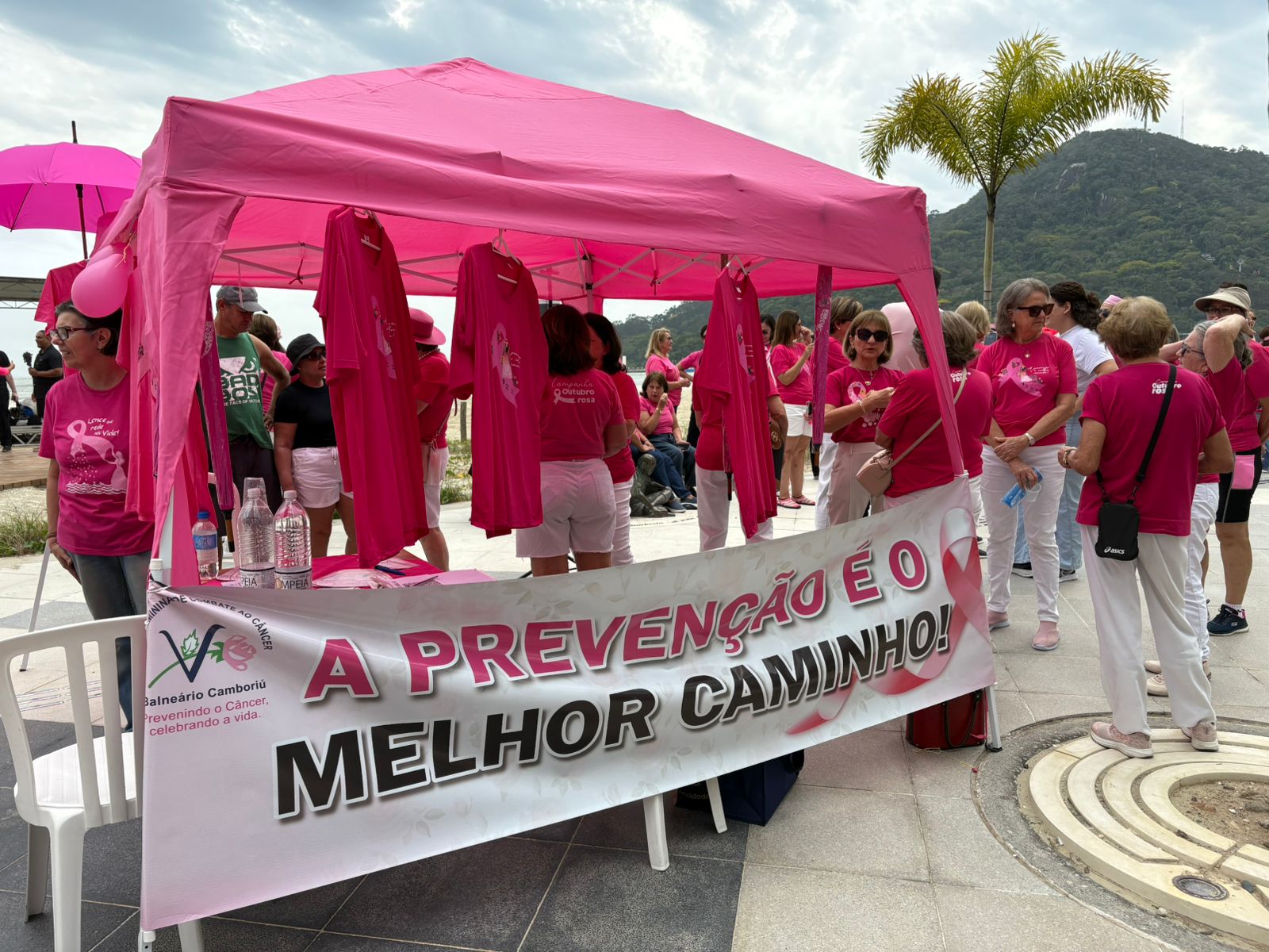 A manhã deste domingo (26) foi marcada pela formação de um laço humano gigante na Praia Central, na altura da Rua 4600. A iniciativa reuniu mulheres de todas as idades em alusão à Campanha Outubro Rosa, que incentiva a prevenção e o combate ao câncer de mama. A estimativa é que cerca de 300 pessoas tenham participado do evento.