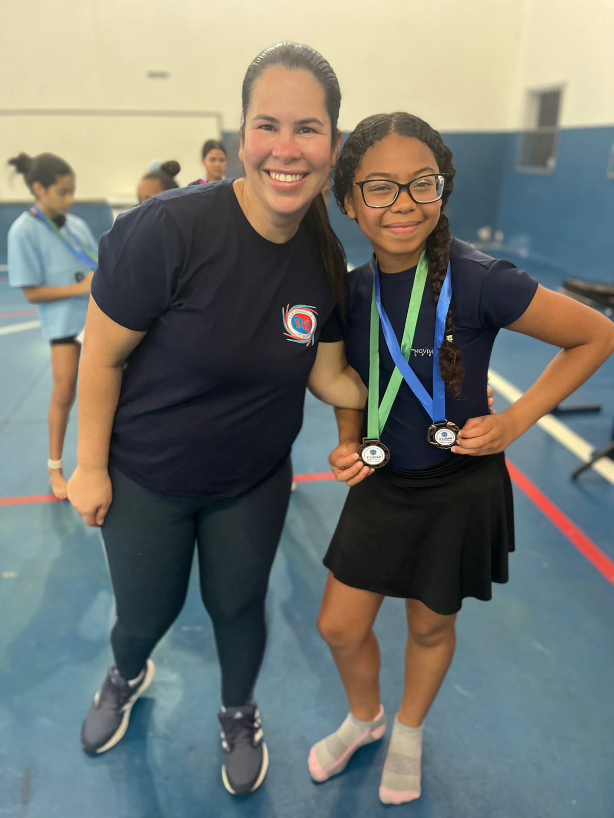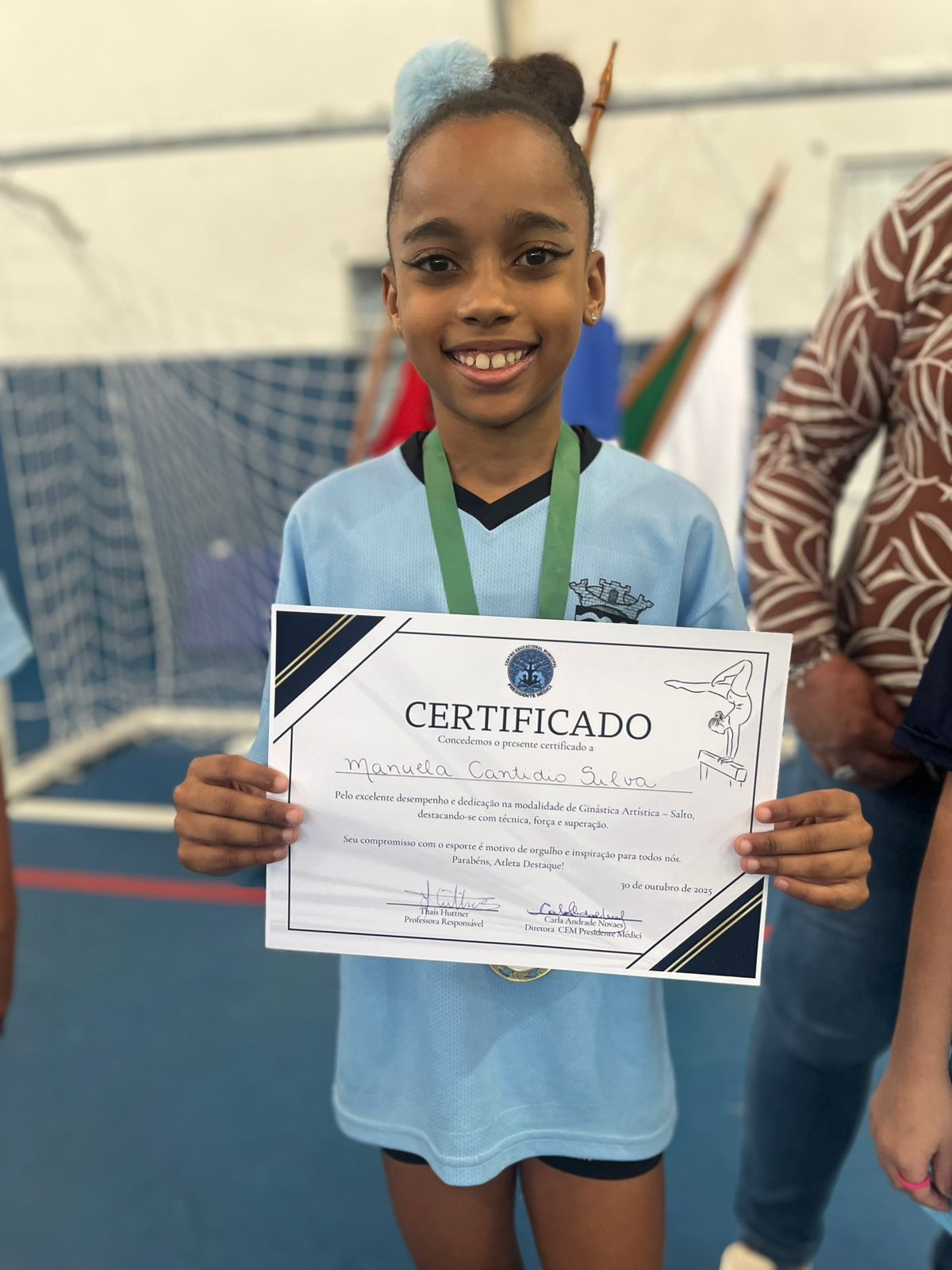 A manhã desta quinta-feira (30) foi repleta de acrobacias e saltos no Centro Educacional Municipal (CEM) Presidente Médici, no Bairro das Nações. As atividades integraram a programação do Torneio de Ginástica Artística Feminina promovido pela escola.