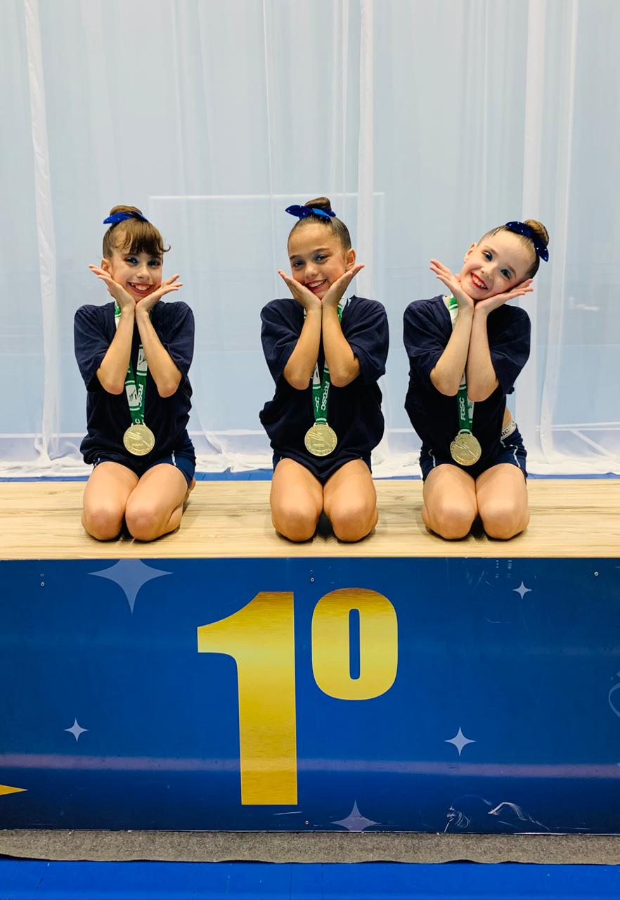 Trio pré-infantil da FME se destacou no aparelho 3 bolas e garantiu o topo do pódio