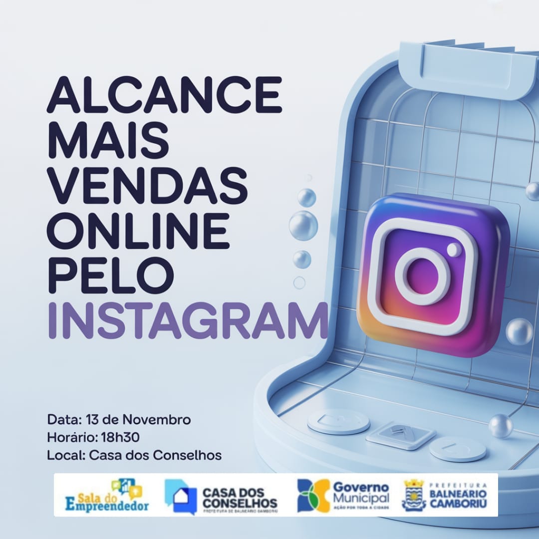 Na próxima semana, a Prefeitura de Balneário Camboriú promoverá uma oficina gratuita sobre vendas para moradores que empreendem ou têm interesse em empreender. A atividade “Alcance mais Vendas On-line pelo Instagram” será na Casa dos Conselhos (Rua 1822, nº 1510, Centro), dia 13, às 18h30.