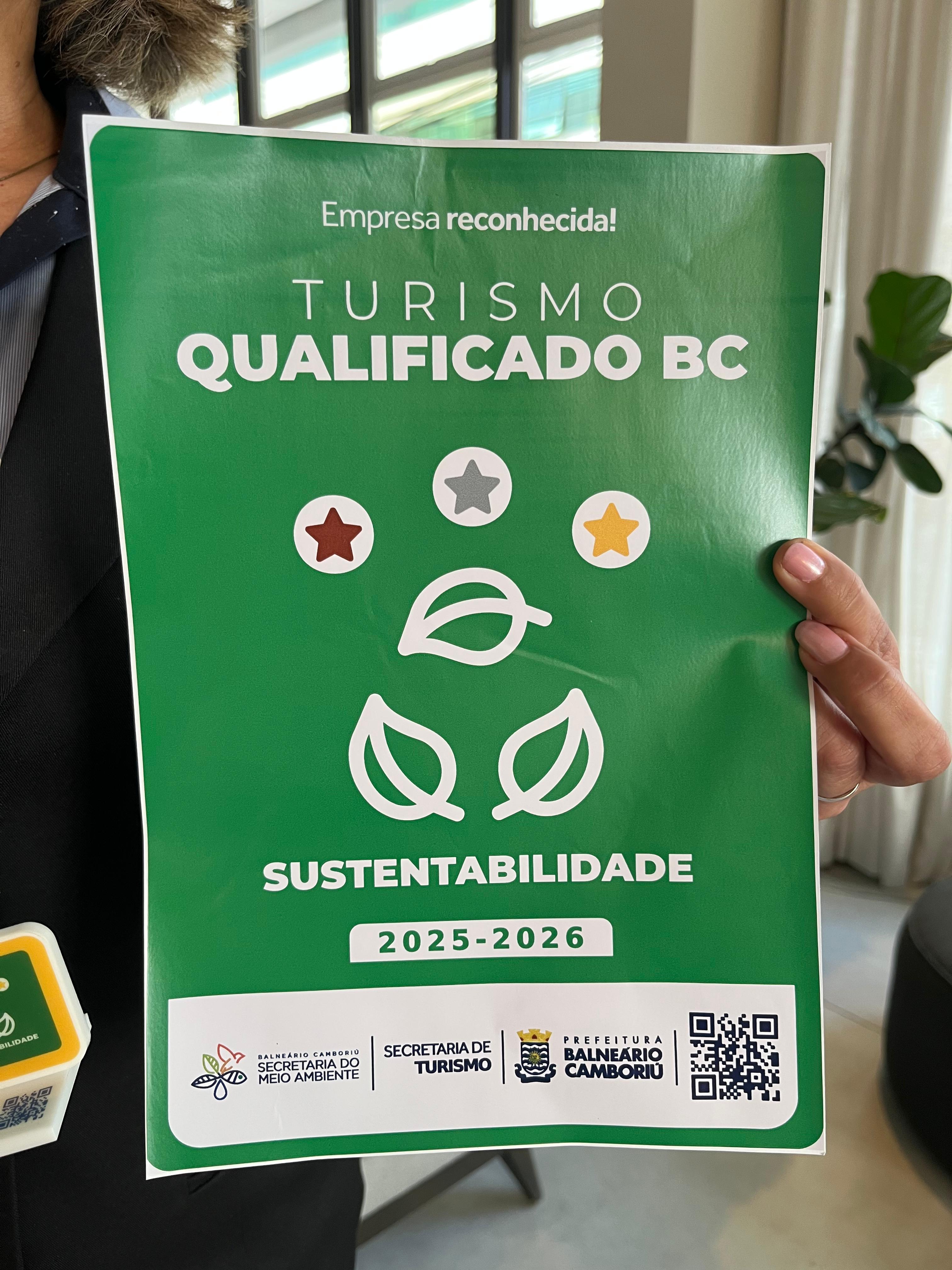A Prefeitura de Balneário Camboriú, por meio da Secretaria de Turismo, iniciou na segunda-feira (10) a entrega do Selo Turismo Qualificado, com o reconhecimento concedido ao Hotel Camboriú Plaza. O estabelecimento conquistou o selo ouro de sustentabilidade, após cumprir todos os requisitos exigidos pelo Programa Selo Turismo Qualificado BC.
