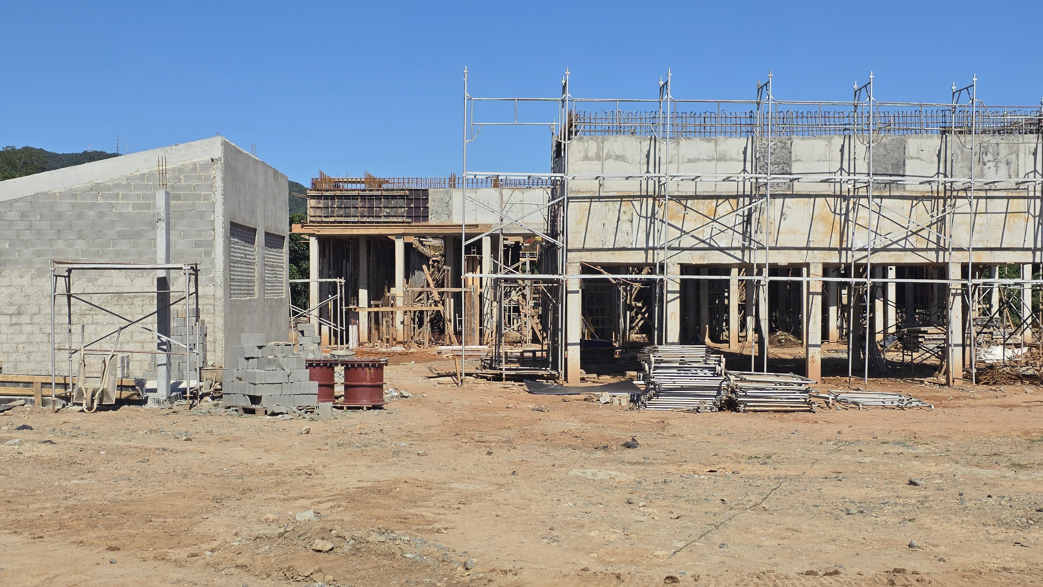 Com estrutura concretada, obras seguem com início da fase de alvenaria e instalação de tubulações