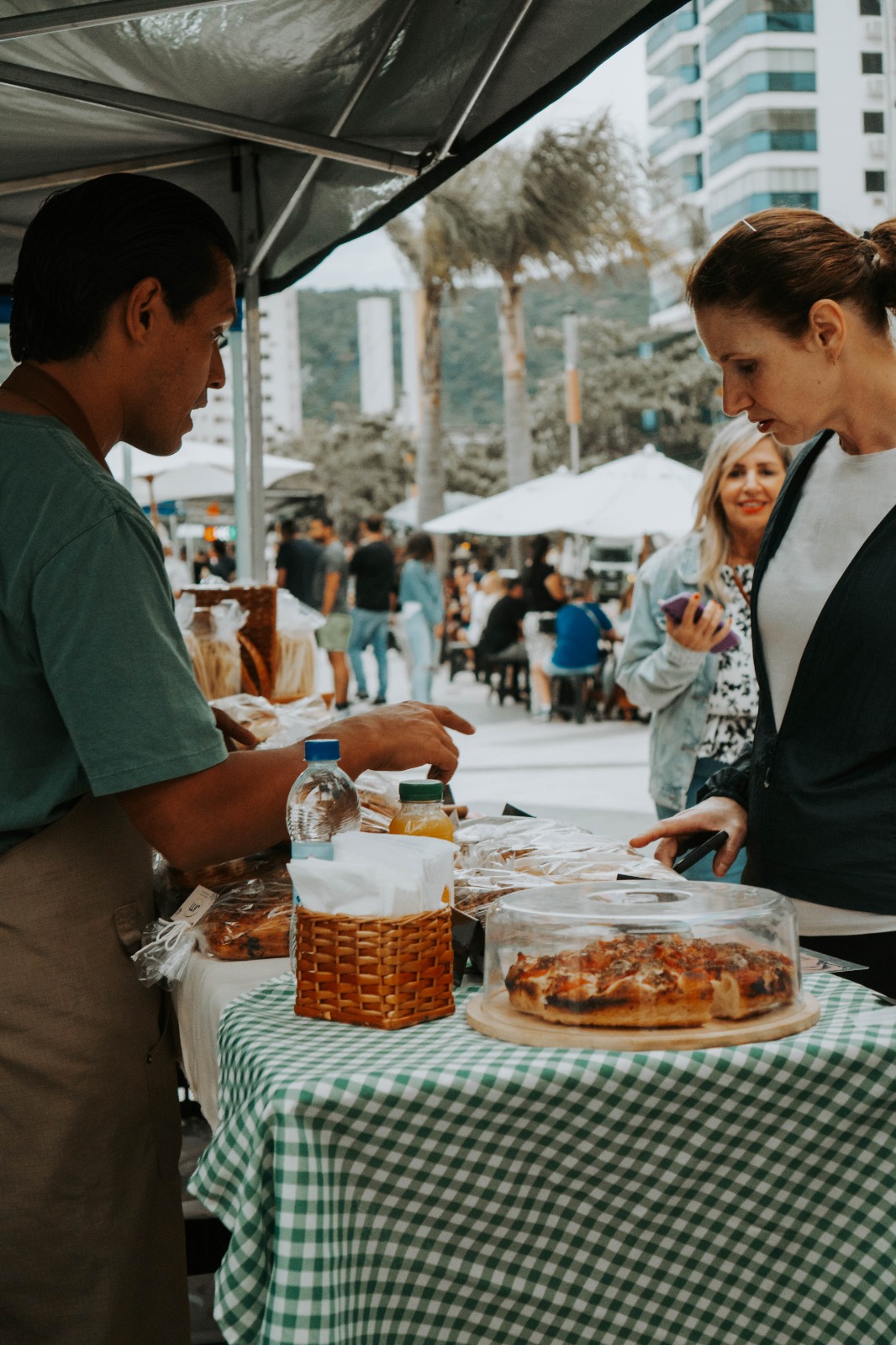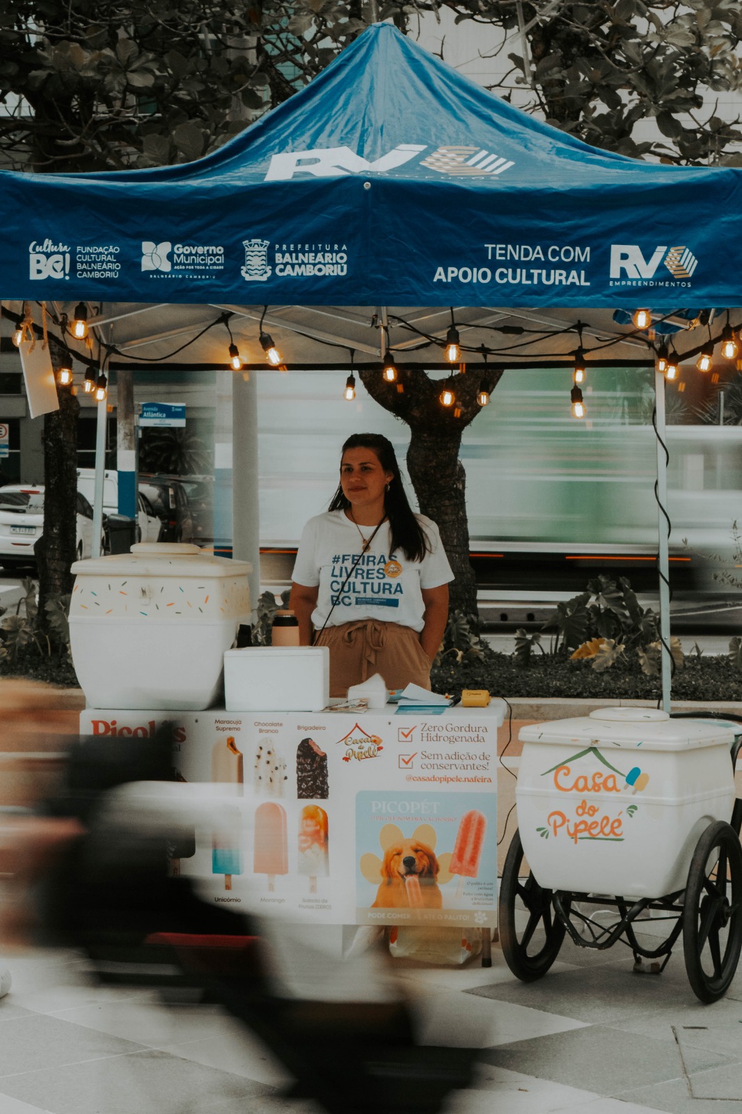 Comercializam seus produtos 40 expositores, que são artesãos e representantes da cultura alimentar. Muitos estrearam na feira, como Bianca Pereira, que fez sucesso com seus picolés artesanais para humanos e para pet, o Picopét. “A gente já era cliente das feiras de Balneário Camboriú. Sempre curtimos o ambiente, que é bem acolhedor. Agora como feirante é uma experiência nova nesse ambiente gostoso, com música e tudo que é tipo de gastronomia”, contou Bianca que, com o marido, está à frente da Casa do Pipelé na Feira.
