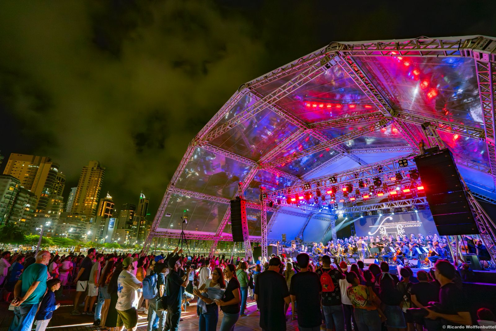 A noite deste sábado (15) foi marcada pela abertura oficial da programação natalina de Balneário Camboriú, o Viva o Natal BC. Milhares de pessoas tomaram as areias da Praia Central, em frente à praça Almirante Tamandaré, para assistir ao espetáculo.
