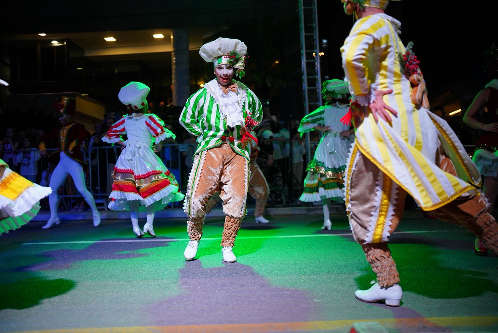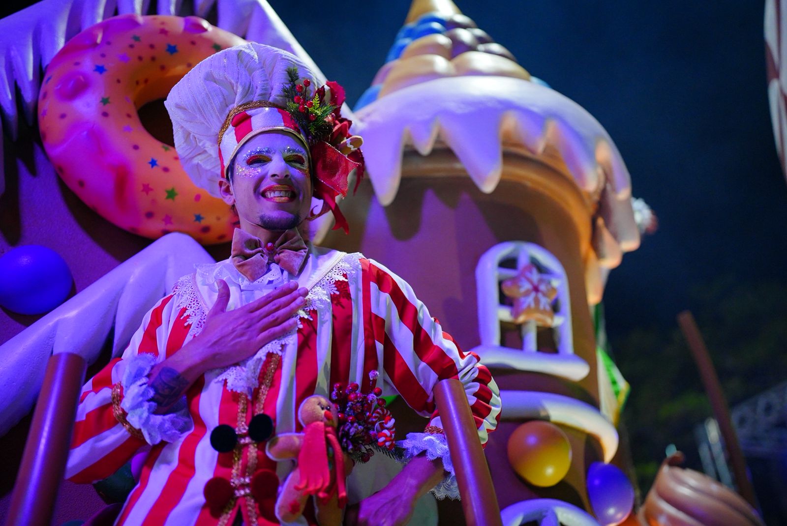 Ao todo, um Papai Noel e cerca de 50 artistas, entre cantores, atores, acrobatas e bailarinos, compuseram o espetáculo, apresentando uma performance inédita sobre e entre os cinco carros alegóricos que integraram o desfile, além do Bonde Oceanic, que auxiliou no deslocamento dos artistas ao longo do percurso.