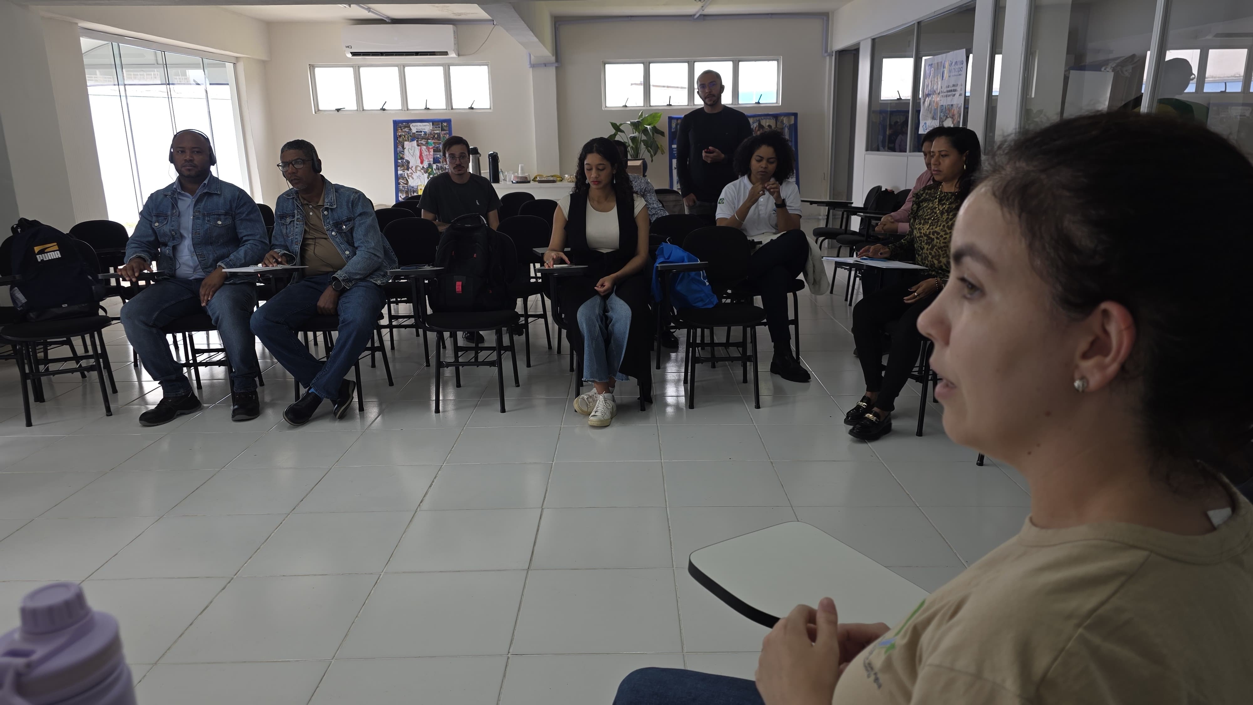 Na sequência, a coordenadora do Projeto Produtor de Água, Rafaela Comparim dos Santos, apresentou aos visitantes o histórico da iniciativa, seus objetivos, metodologia de trabalho, resultados alcançados ao longo dos anos, experiências com os produtores rurais e situações vividas em campo. Ela também respondeu a diversas perguntas da delegação dominicana sobre financiamento, participação dos proprietários, monitoramento dos indicadores e desafios de implementação.