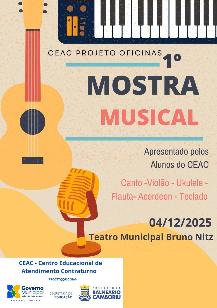 Na quinta-feira (4), dois eventos movimentam o espaço cultural. Às 19h, os alunos do Centro Educacional de Atendimento no Contraturno (CEAC) sobem ao palco para mostrar o resultado de meses de aprendizado e dedicação. Será a “1ª Mostra Musical do CEAC”, com apresentações de ukulele, violão, teclado, acordeon, canto e flauta. A entrada é gratuita.