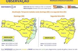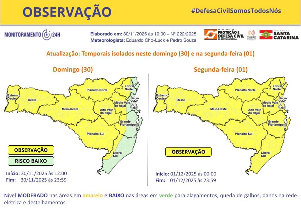 Defesa Civil emite aviso de observação para temporais em Balneário Camboriú