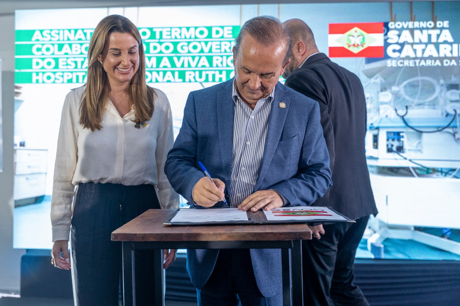 Em um momento histórico para Balneário Camboriú, o termo de colaboração que oficializa a transferência do Hospital Regional Ruth Cardoso (HRRC) para o Estado de Santa Catarina foi assinado pelo governador Jorginho Mello, na tarde desta terça-feira (2).