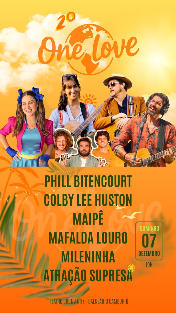 O Teatro Municipal Bruno Nitz, em Balneário Camboriú, recebe a segunda edição do “One Love Festival” neste domingo (7), às 19h. Com artistas brasileiros e estrangeiros, o festival será um espetáculo de música beneficente. Os ingressos estão à venda pelo site www.sympla.com.