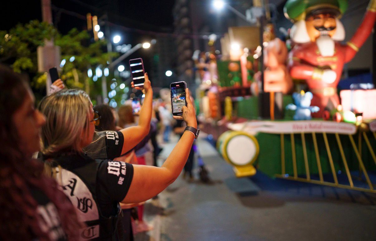 Música, sabores, pedidos de Natal e o trenó do Papai Noel integram experiência natalina nos desfiles
