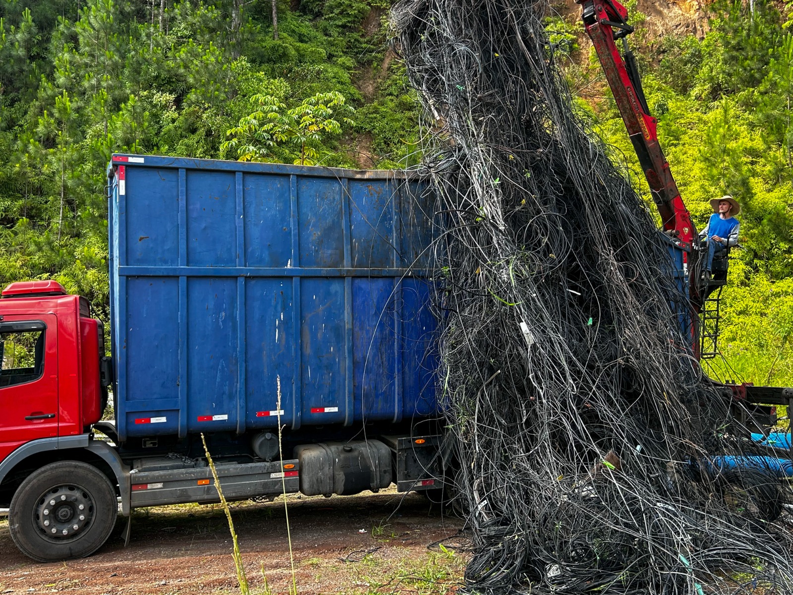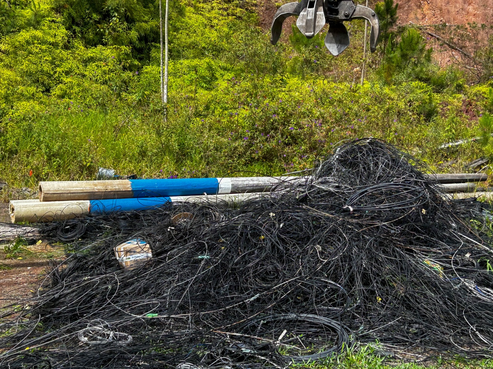 Os fios de fibra óptica, que já não possuem utilidade, serão enterrados de forma ambientalmente segura. Já os cabos de ferro e cobre passarão por trituração. Nesse processo, os componentes plásticos são separados dos metálicos, possibilitando a reciclagem e o reaproveitamento.