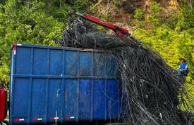 A retirada e o transporte ficam a cargo da empresa GSM Ambiental, de São José dos Pinhais (PR), que executa o serviço sem custos para os cofres públicos. Os cabos seguem agora para São Paulo, onde serão processados conforme o tipo de material.