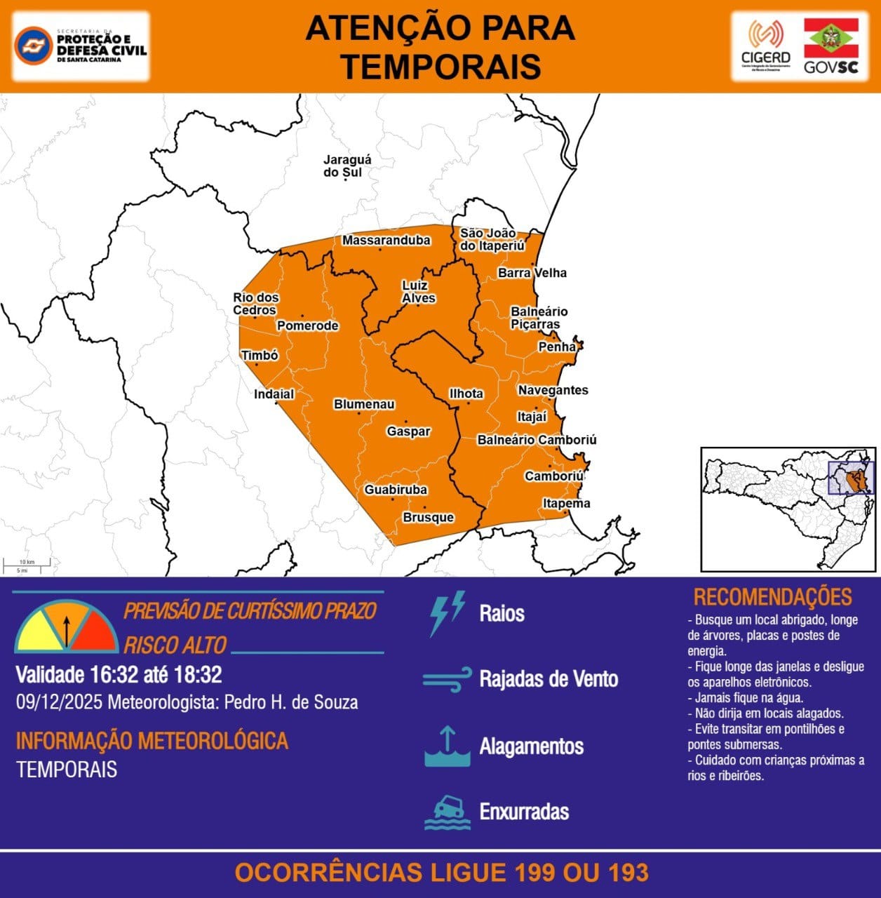 BOLETIM DE CHUVAS – BALNEÁRIO CAMBORIÚ (17h)