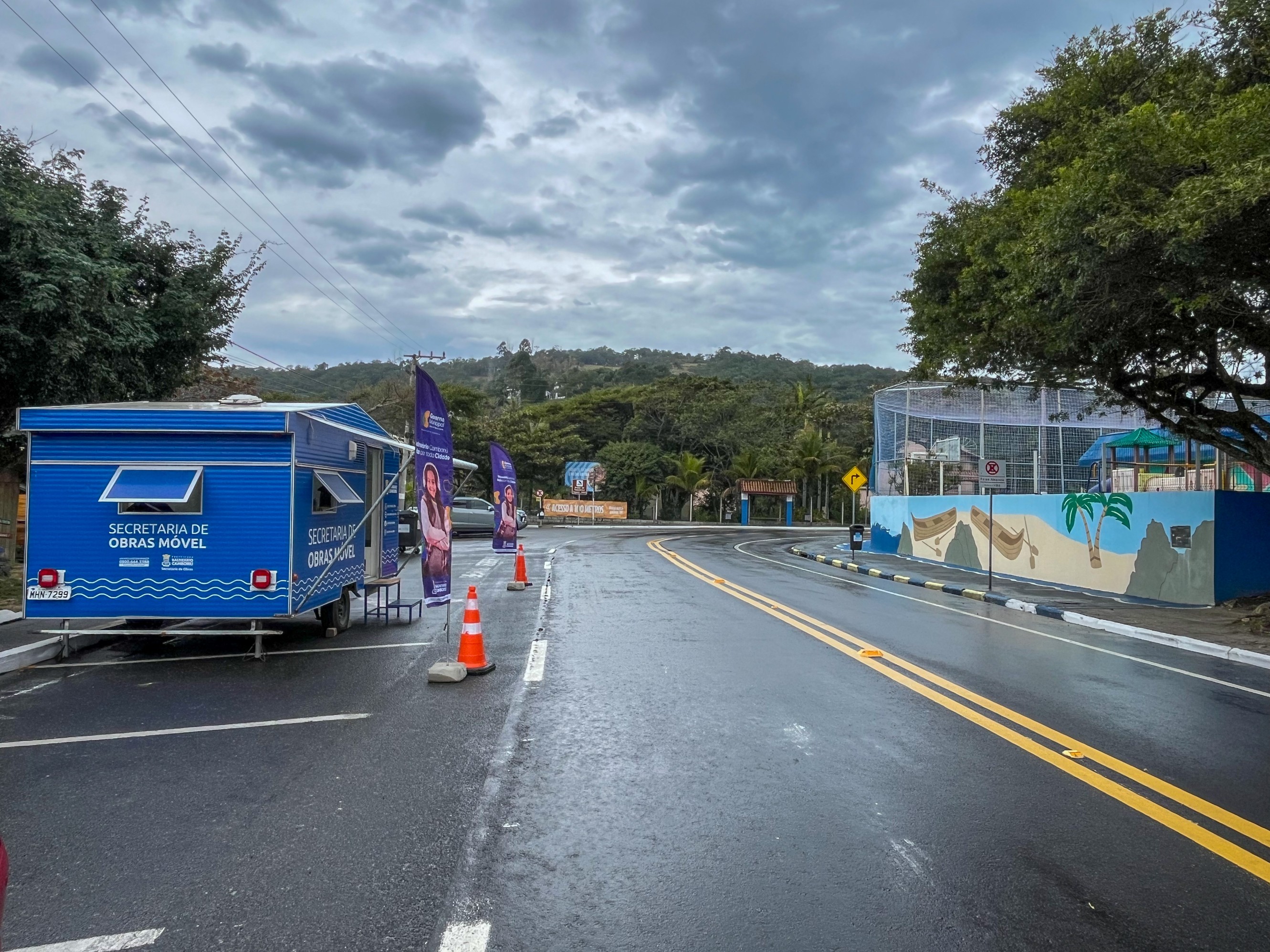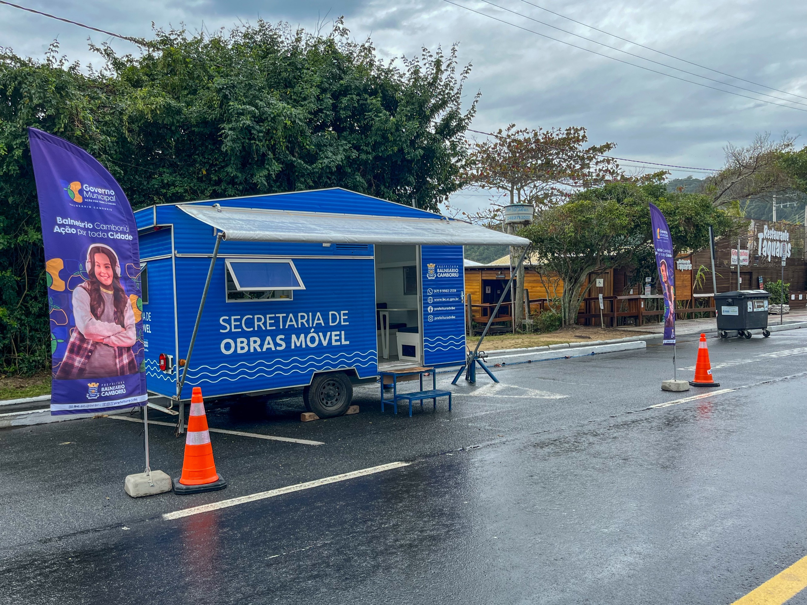 A Secretaria de Obras Móvel de Balneário Camboriú chegou ao Bairro Taquaras na manhã desta segunda-feira (15). A unidade itinerante está instalada na Avenida Rodesindo Pavan, próxima ao Centro Educacional Municipal (CEM) Taquaras e em frente ao Rancho de Pescadores.