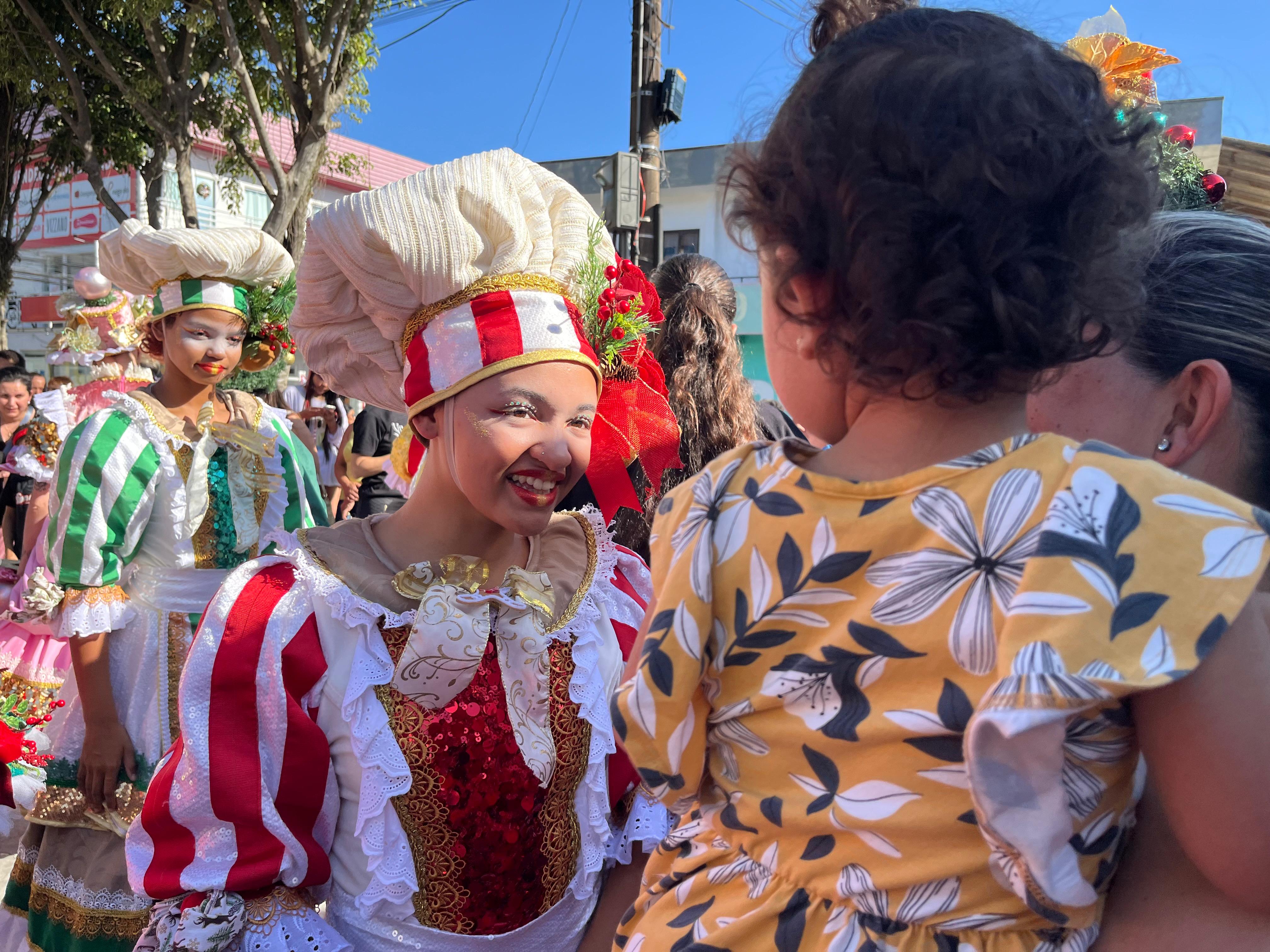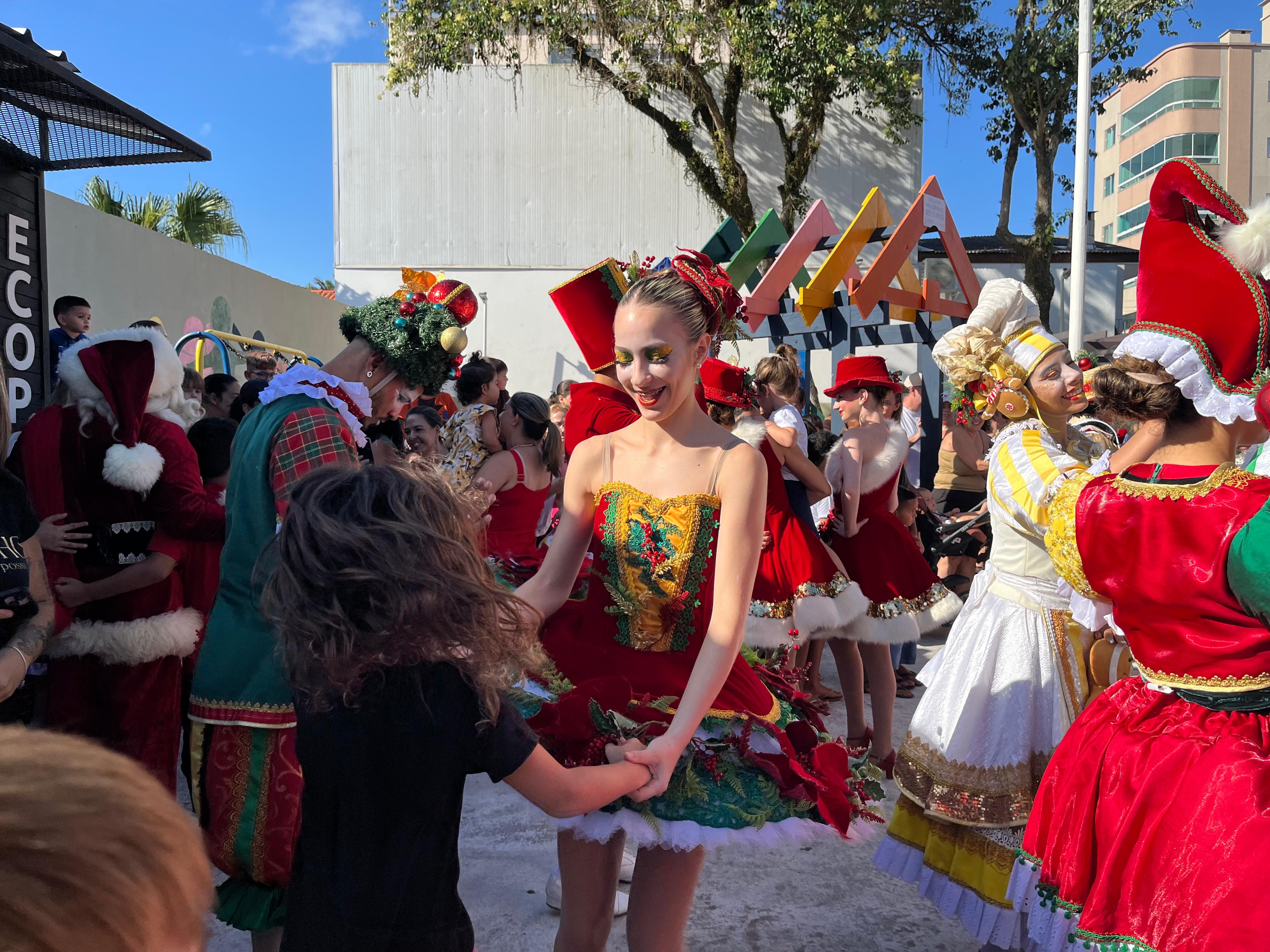 A tarde desta quinta-feira (18) foi especial para as famílias do Bairro das Nações, que receberam a visita de artistas do Viva o Natal BC 2025 e do Papai Noel em uma divertida parada natalina, que ocorreu na Praça Manoel Germano Correa, ao som do jingle “Viva o Natal BC”.