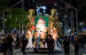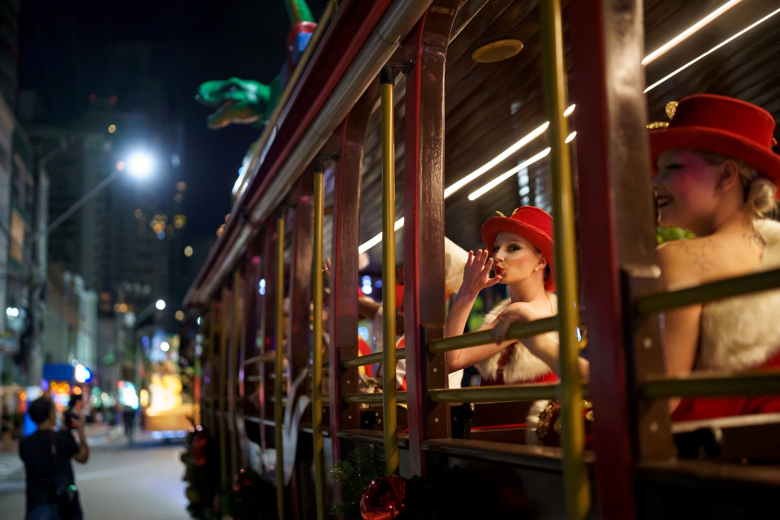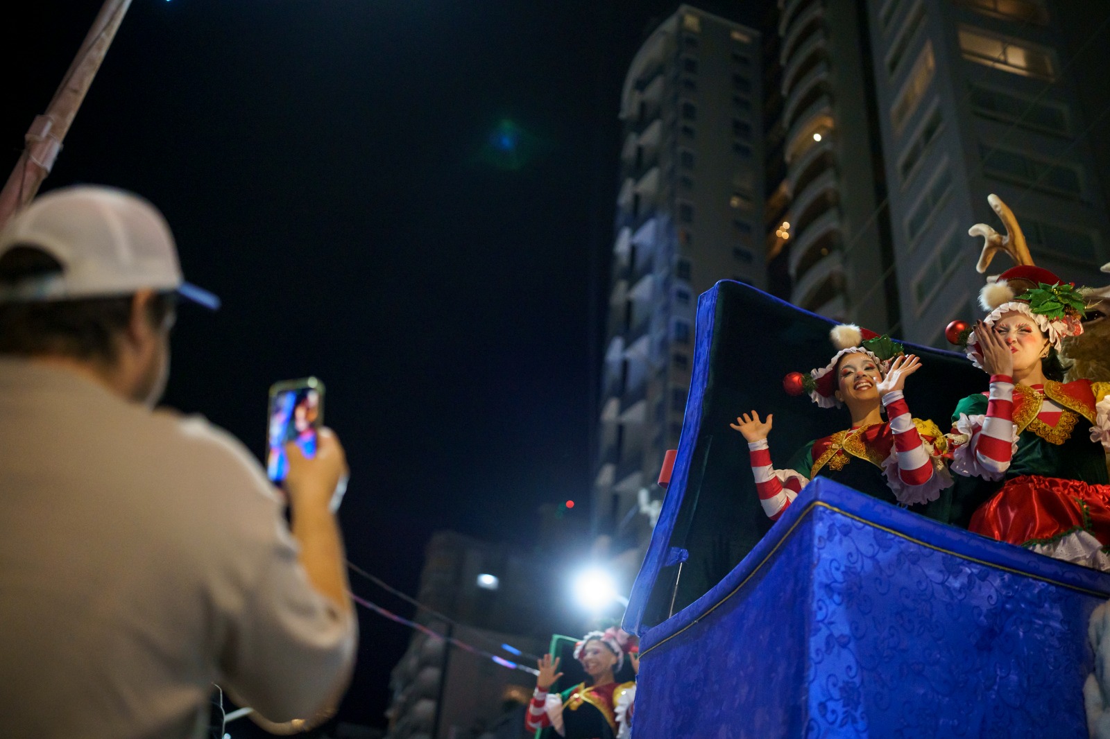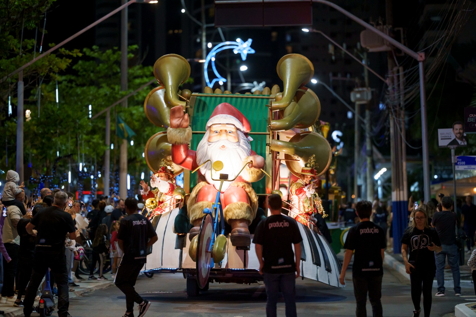 A noite deste sábado (20) marcou o penúltimo desfile de Minha Noite de Natal em Balneário Camboriú, que alegrou o público presente na Avenida Atlântica, da Barra Sul ao Pontal Norte. Por trás de cada desfile realizado, há uma equipe que vai desde coreógrafos até motoristas, responsáveis por levar a magia do Natal para moradores e turistas da cidade.
